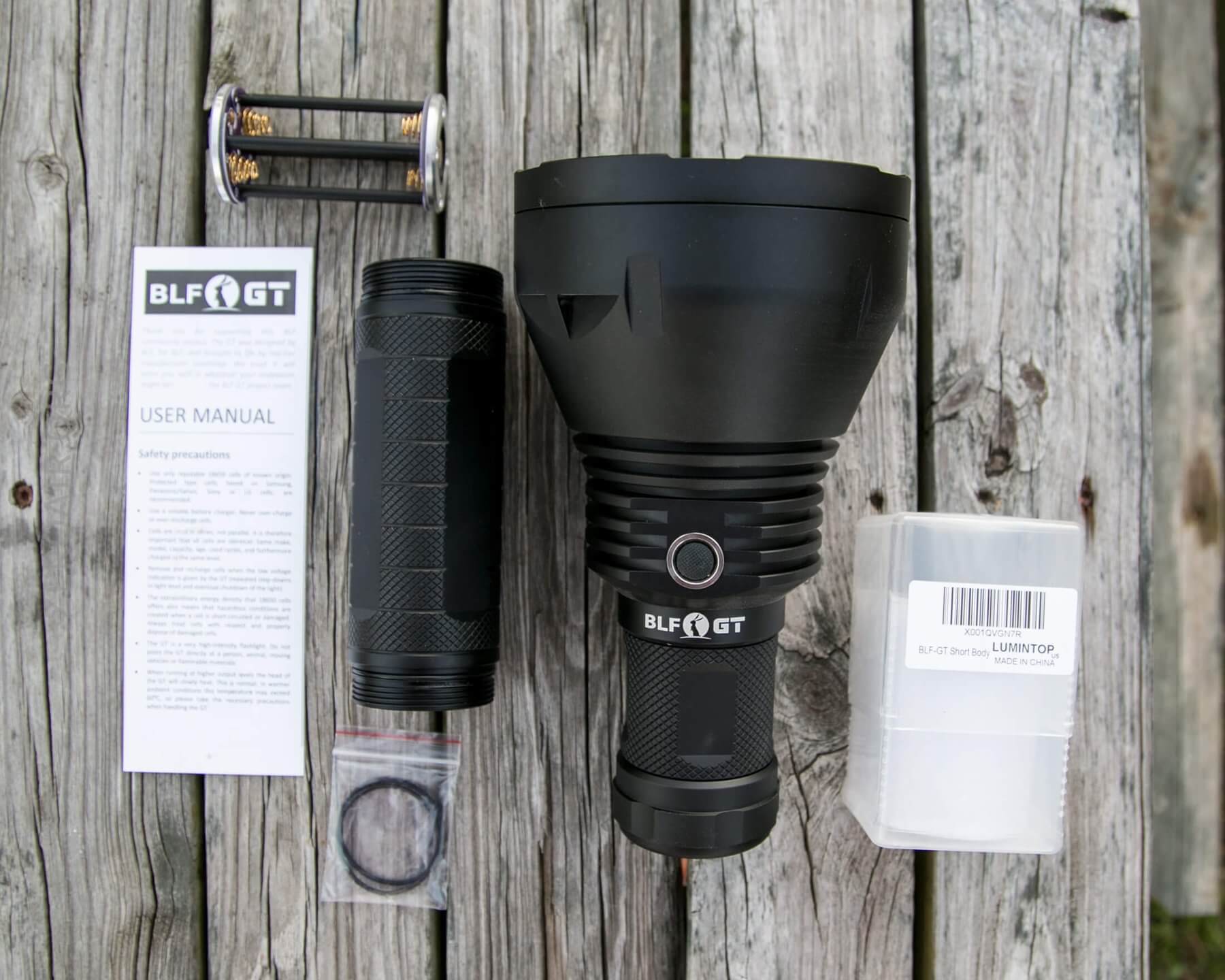 The BLF GT ships in a massive cardboard box. Inside is a bunch of foam, which securely holds the light.