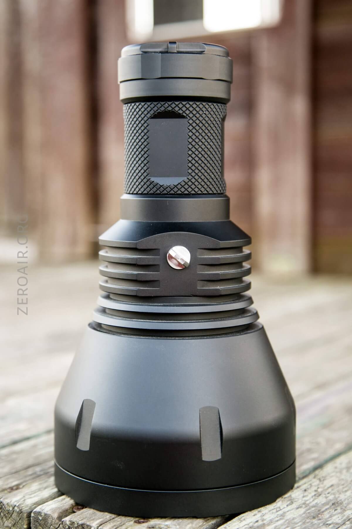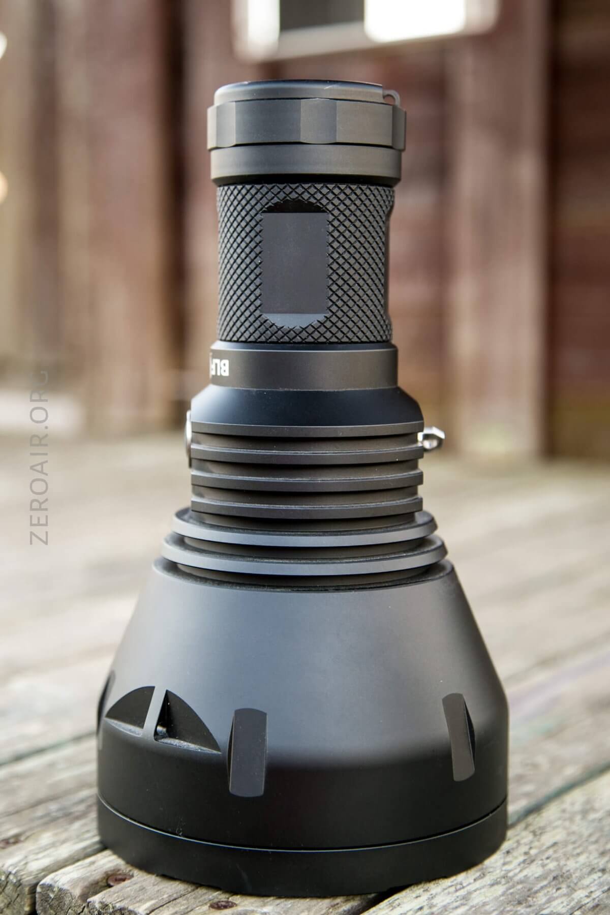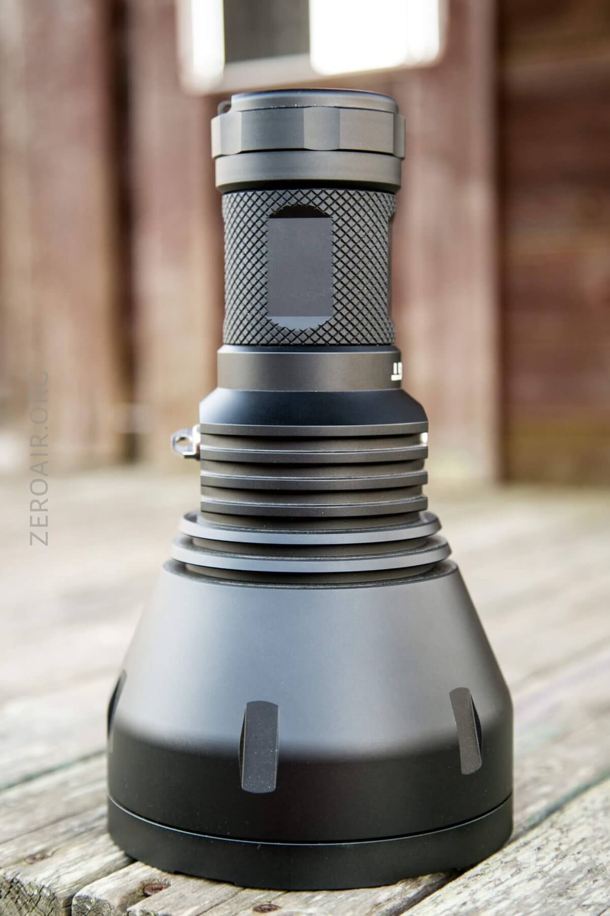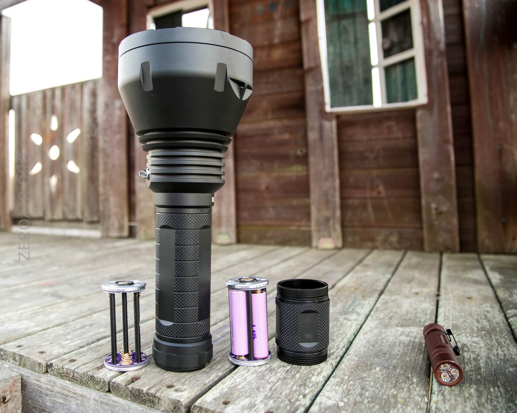 I tested this light only with the 4×18650 power option. There are a few reasons for that, but the most important among them is that the performance (output, throw) is unchanged between the options. The only difference is the runtime. But with a little math, it’s not hard to extrapolate what will happen with twice the number of cells.
