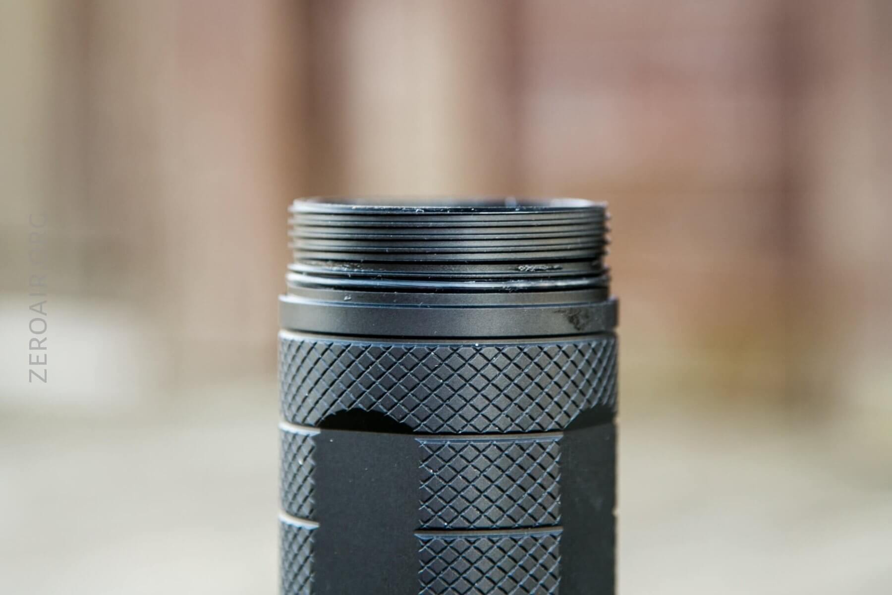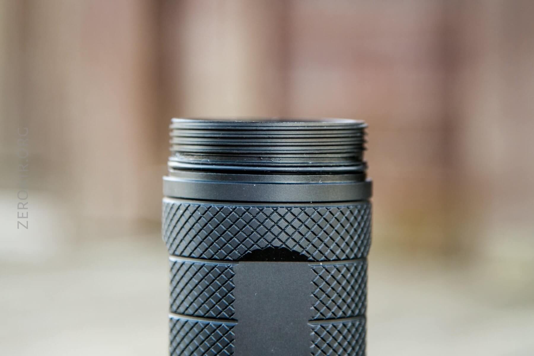 Threads on the cell tubes are anodized and square-cut, and smooth. There’s no sense of binding, and there’s no lube, either.