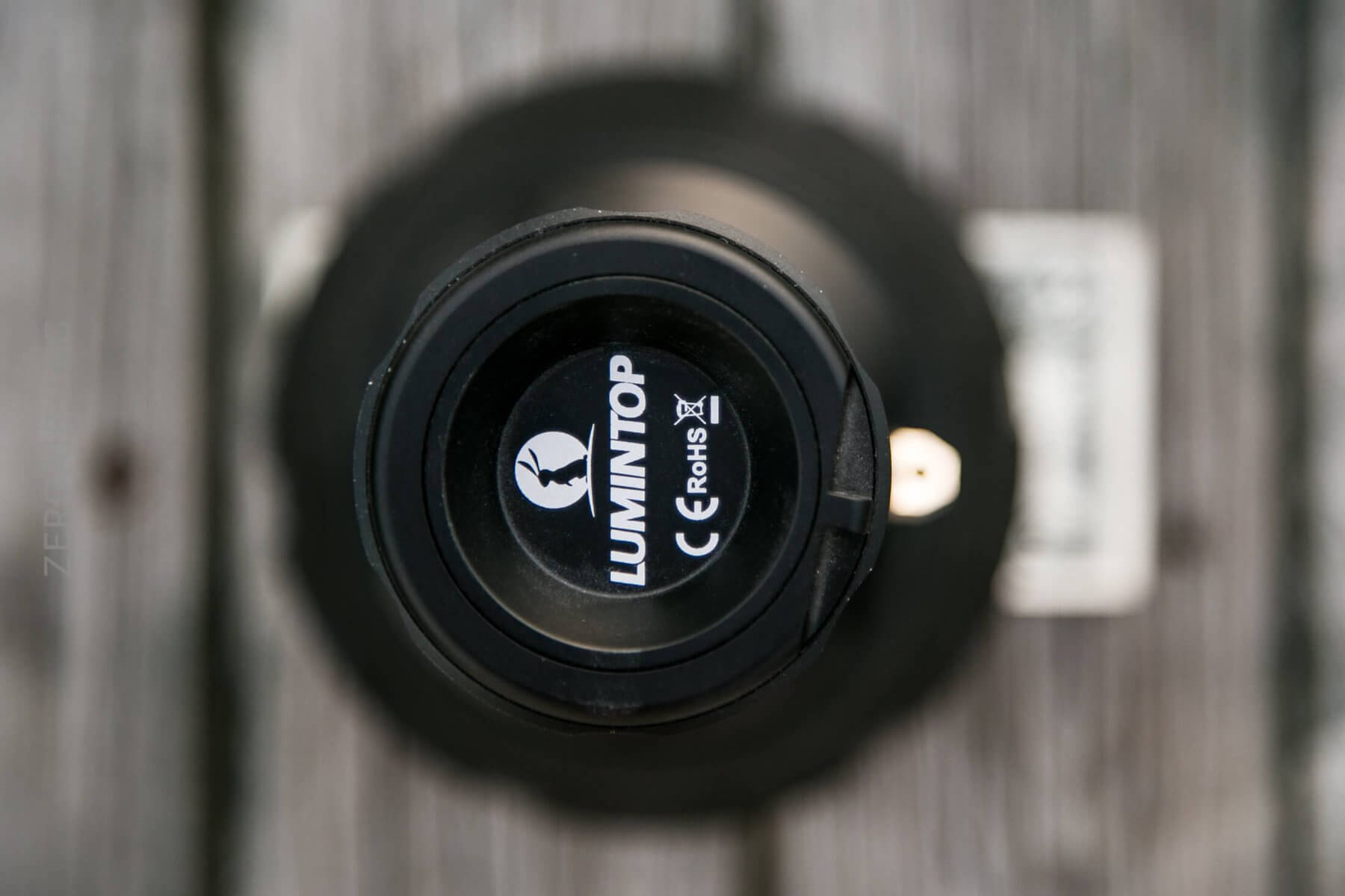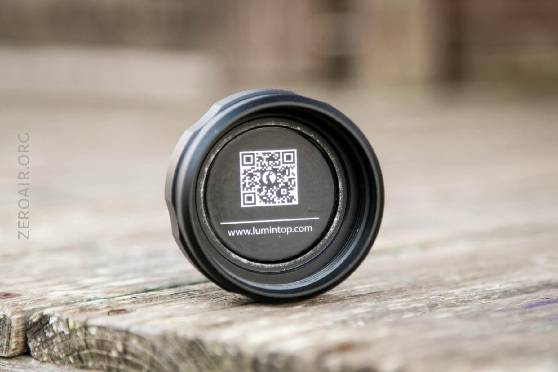 The tailcap is just a dummy tailcap – no electronics here. There is a bit of Lumintop branding, though, and a QR code.