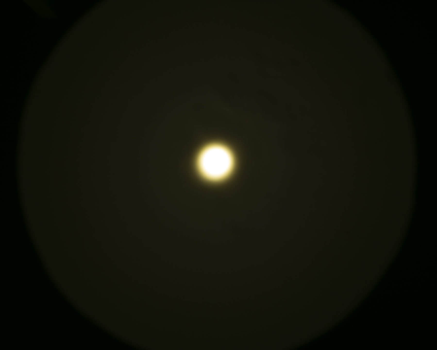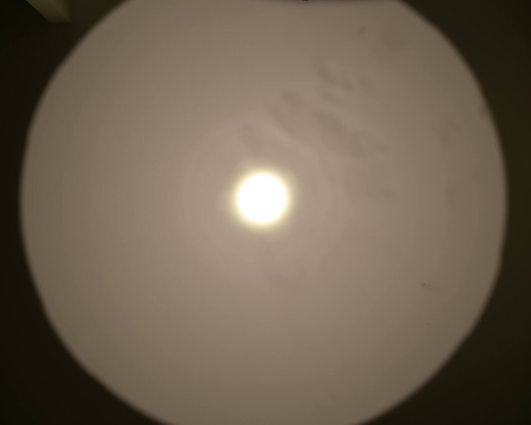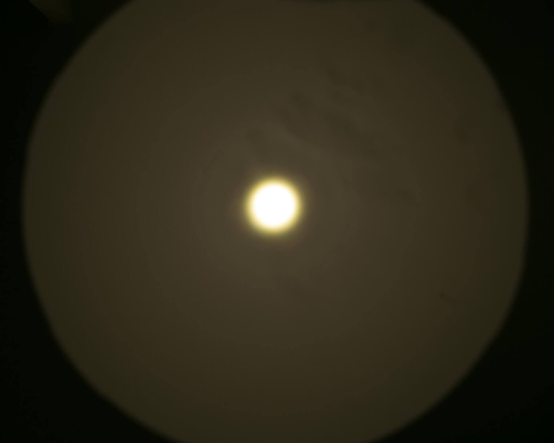 The emitter sitting deep within this big ol smooth reflector is a Cree XHP35 HI. That’s the thrower of choice in my opinion and a wonderful choice for this light. It’s even neutral white, which proves that this is a community-driven light. (If it was manufacturer only, it’d certainly be CW, so they could pump out just a few more lumens, and a few more meters). The reflector is smooth with whatever it is the photo shows off below. Not really even enough to call it orange peel, but there’s a bit of wave going on, anyway.