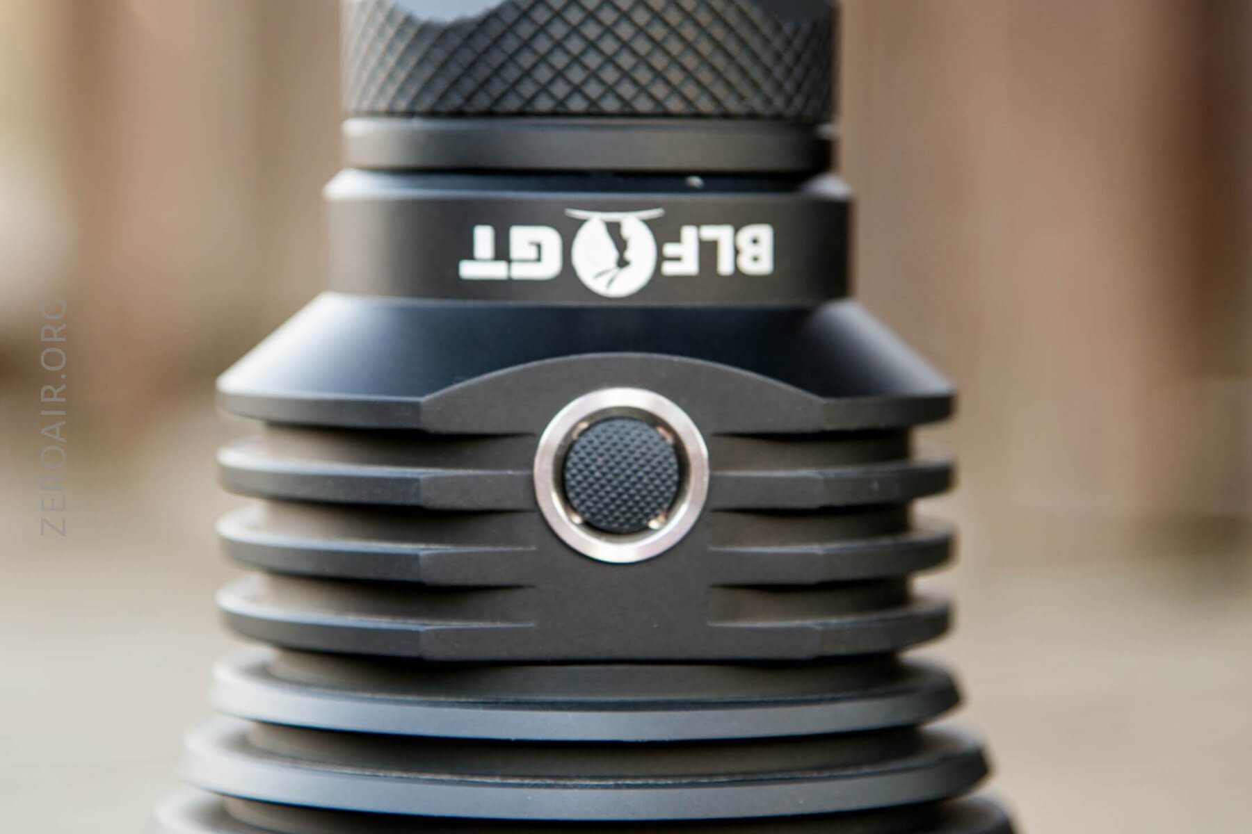 There’s a single switch on the GT. It’s a side, e-switch, and has an indicating emitter under it. The indicator is green. The button has some crosshatching, which allows a nice grip.