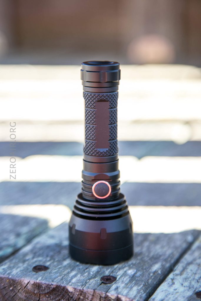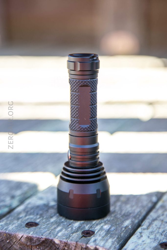 Here’s the test light with the venerable Convoy S2+. Mine’s a custom “baked” edition Nichia 219b triple. A very nice 18650 light.