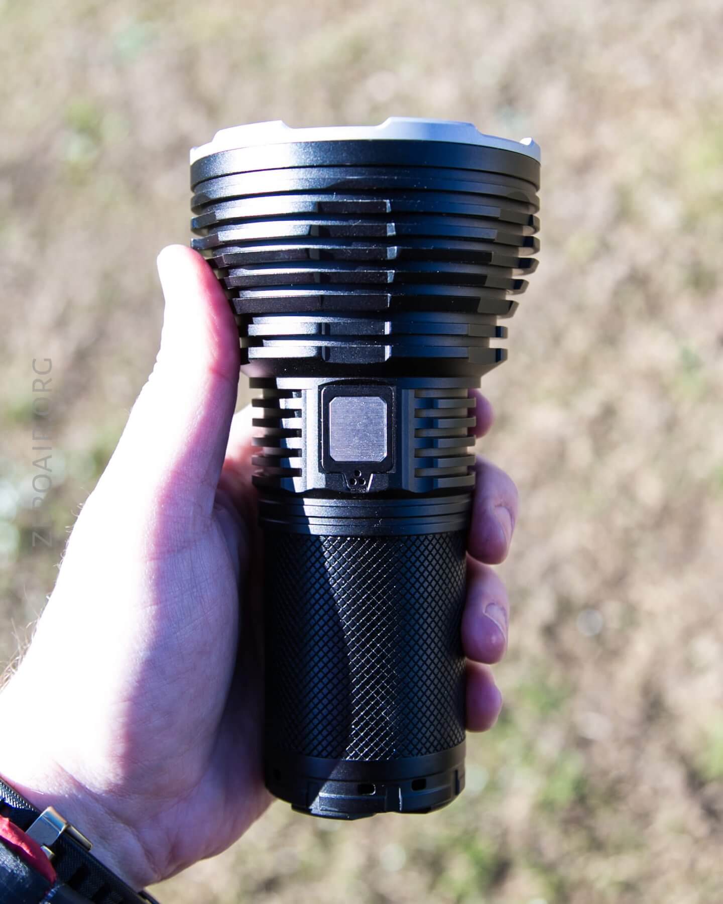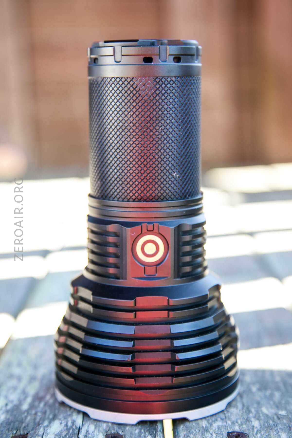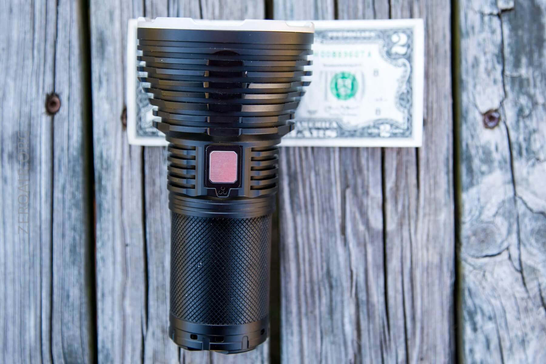 Here’s the test light with the venerable Convoy S2+. Mine’s a custom “baked” edition Nichia 219b triple. A very nice 18650 light.