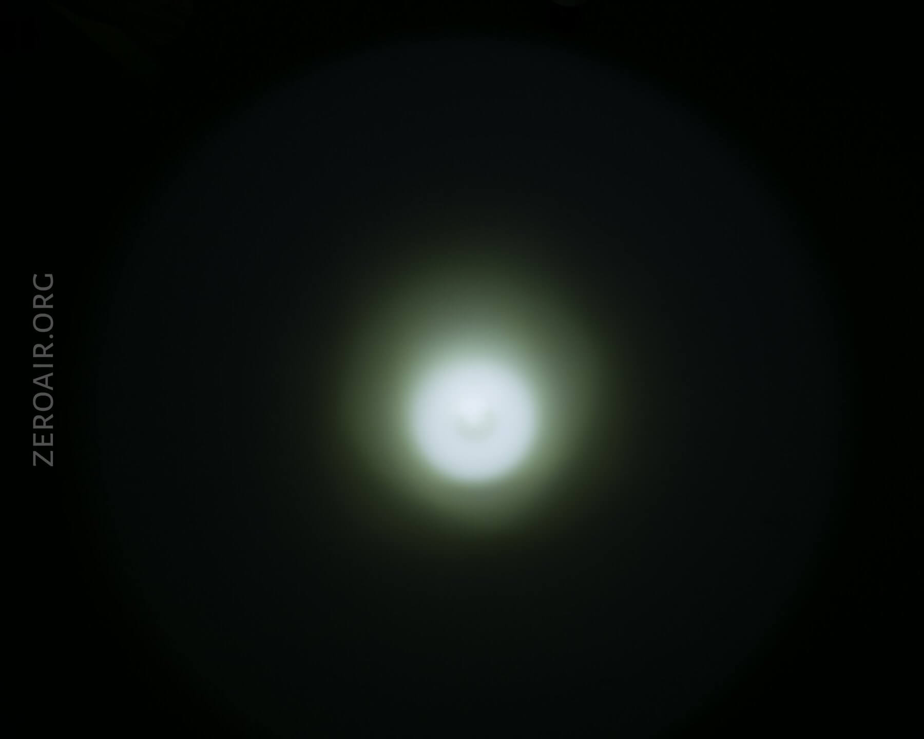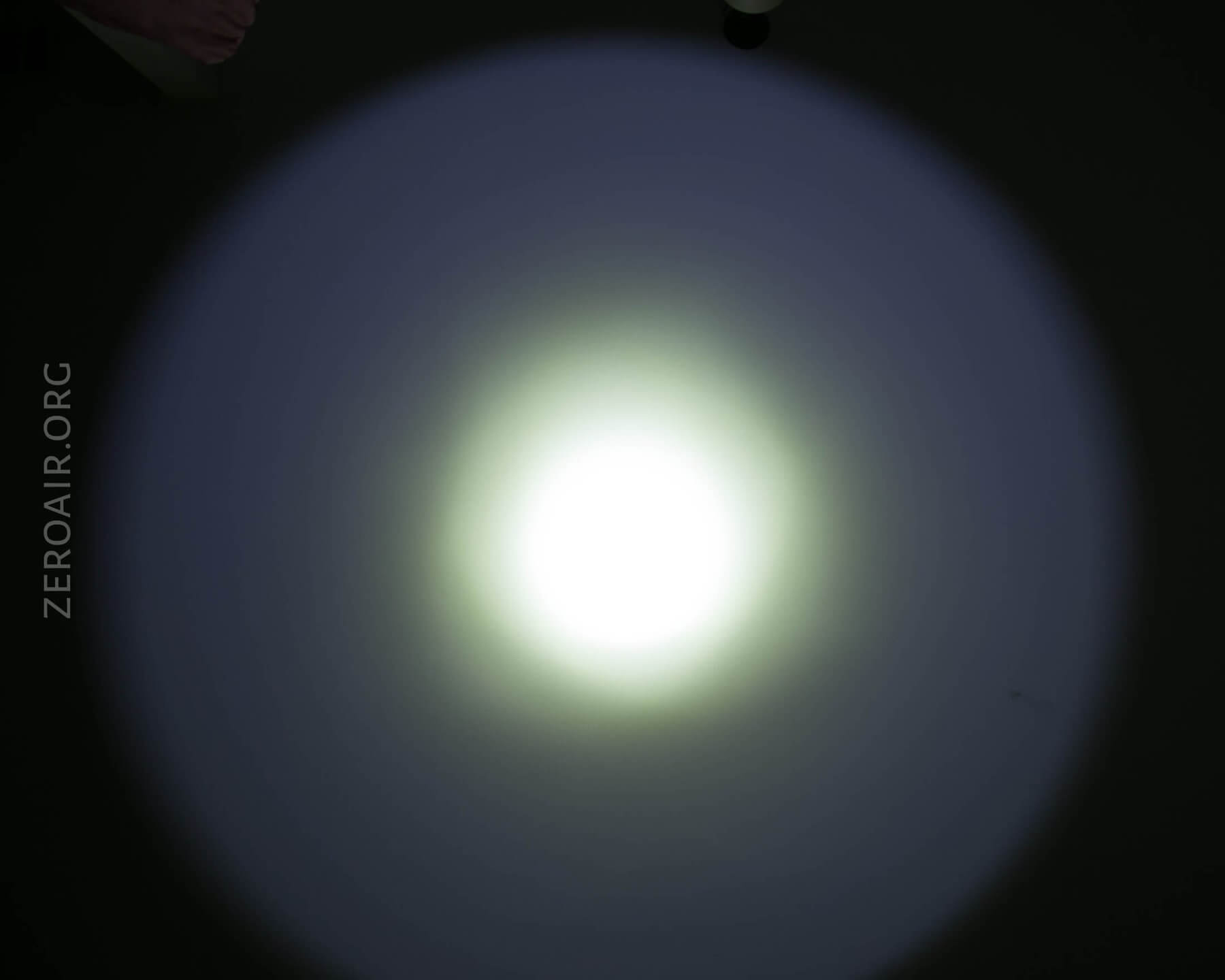2. The emitter in this light has an unusual beam shape, unlike any XHP70 I’ve seen. To understand more you need to know that an XHP70 is made of 4 die on one footprint. Based on the beamshots you can see below, I have a sneaking suspicion that one of these quadrants is dead. That might not fully make up the difference in output we can see in the chart, but it certainly gives us a fuller picture of the light….