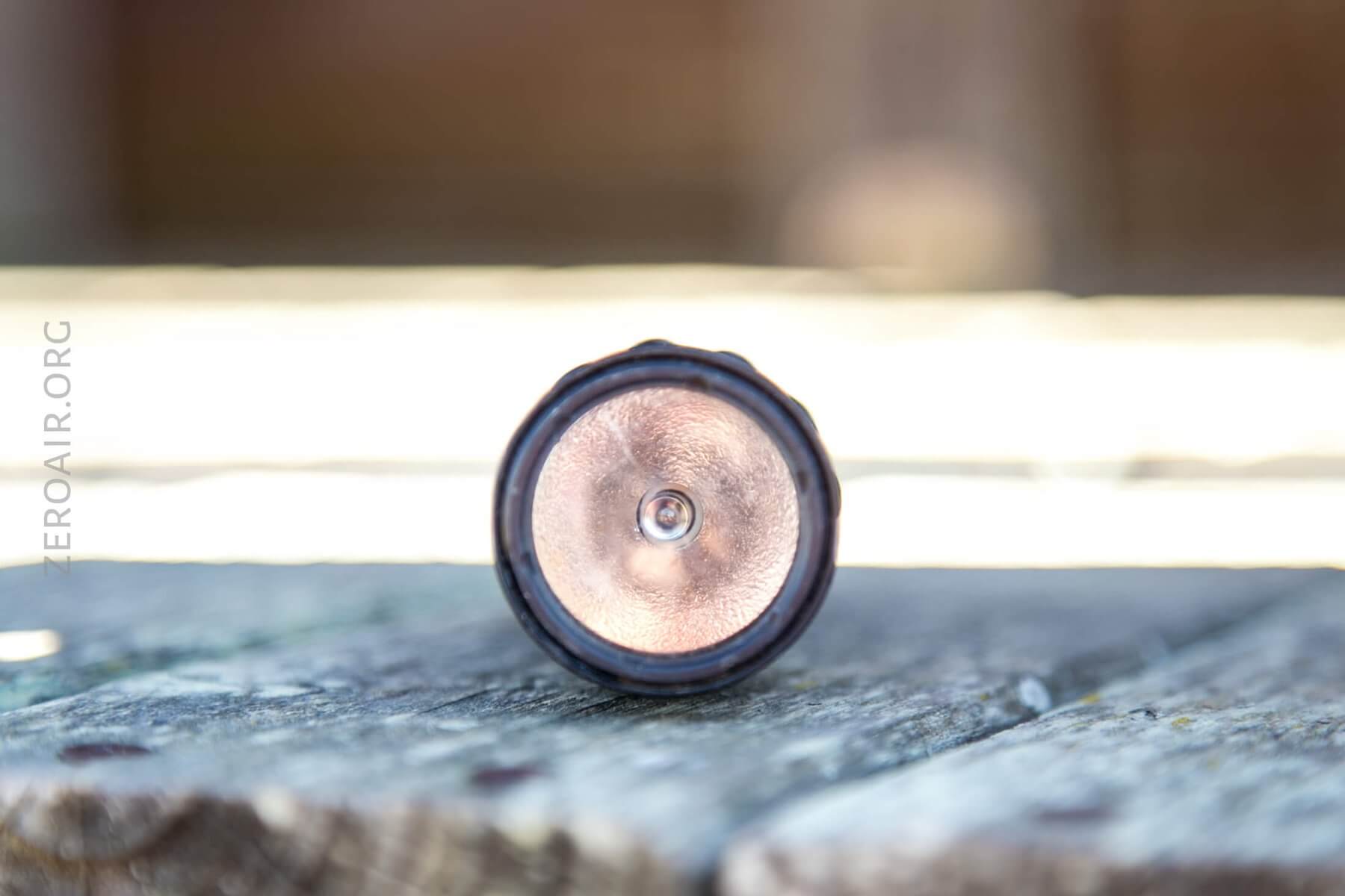 The real fly in the ointment for me on this light is the lens. See below, there’s a bit of wavy meltedness to the lens. As far as I can tell, there should be a tempered Pyrex lens there. This incandescent wouldn’t melt that pyrex, but it could melt the plastic. So I think the lens is plastic, and I don’t think that’d ever come on a genuine Surefire product.