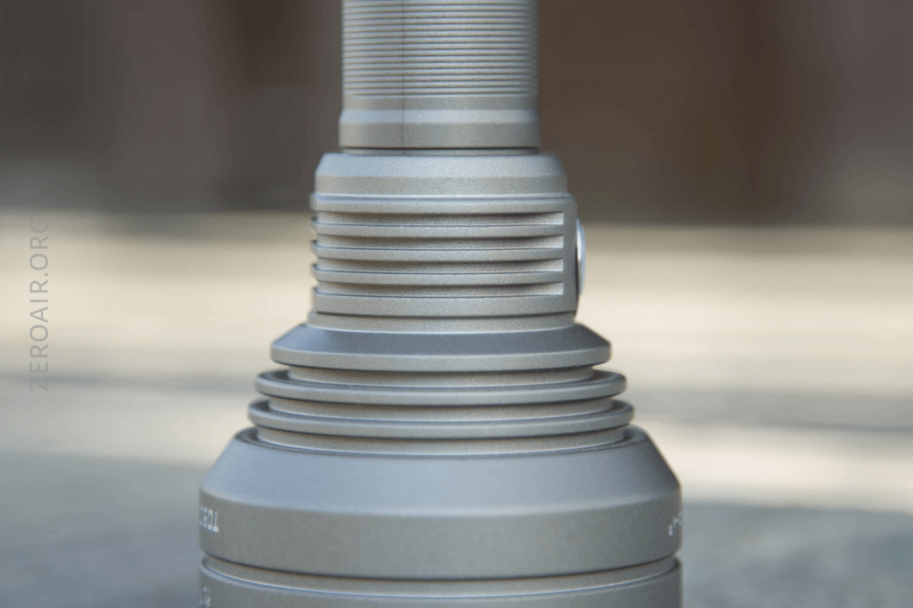 There are some fins on the head around the switch, and also further up the bezel. They aren’t too deep but seem fine. The anodizing feels particularly thick on this light, too.