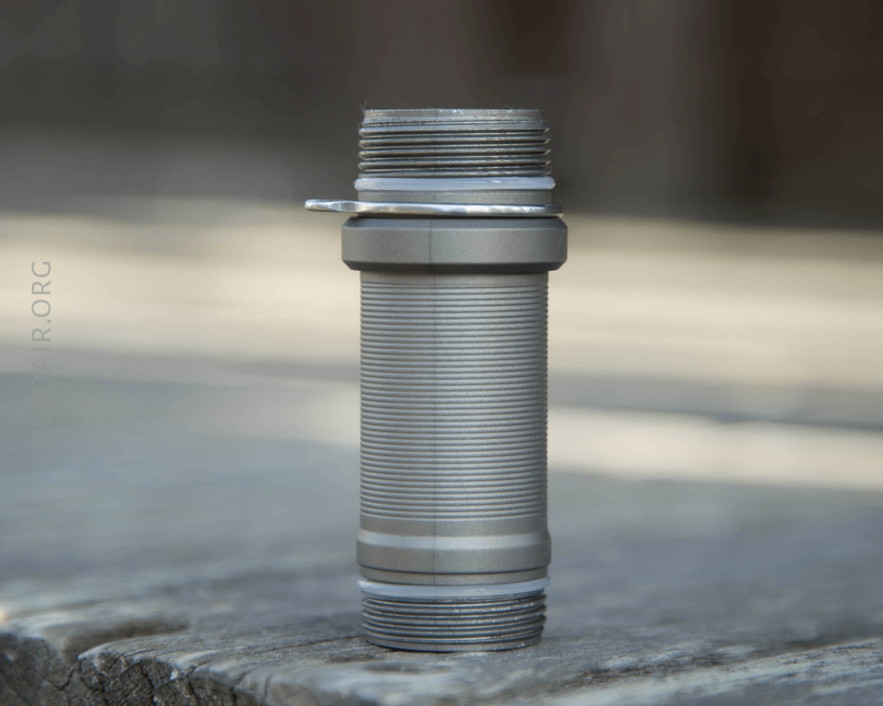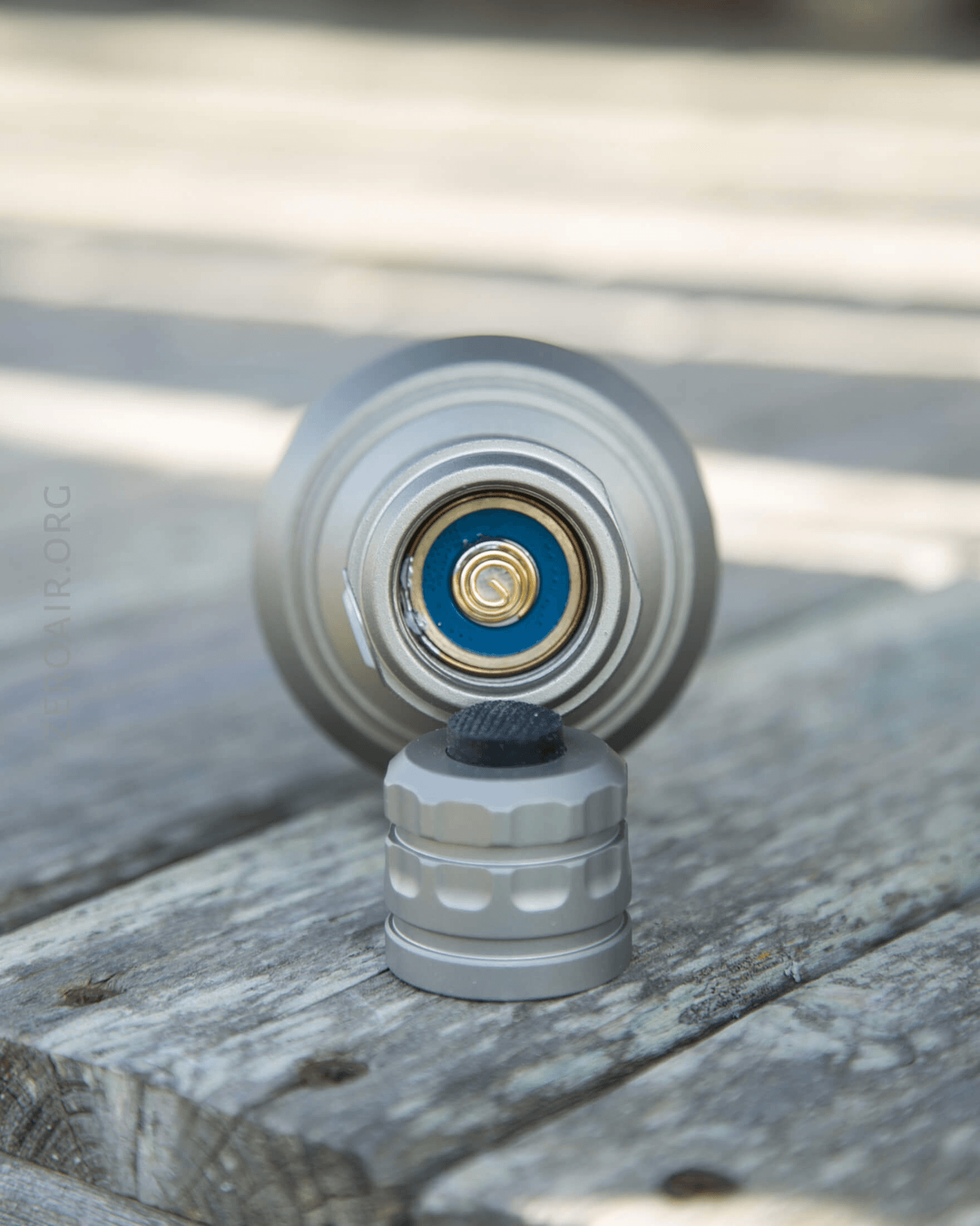The cell tube is not reversible but has anodized, square-cut threads on both ends. (If you’re keeping score, these are actually probably “trapezoidal” threads, in fact.)