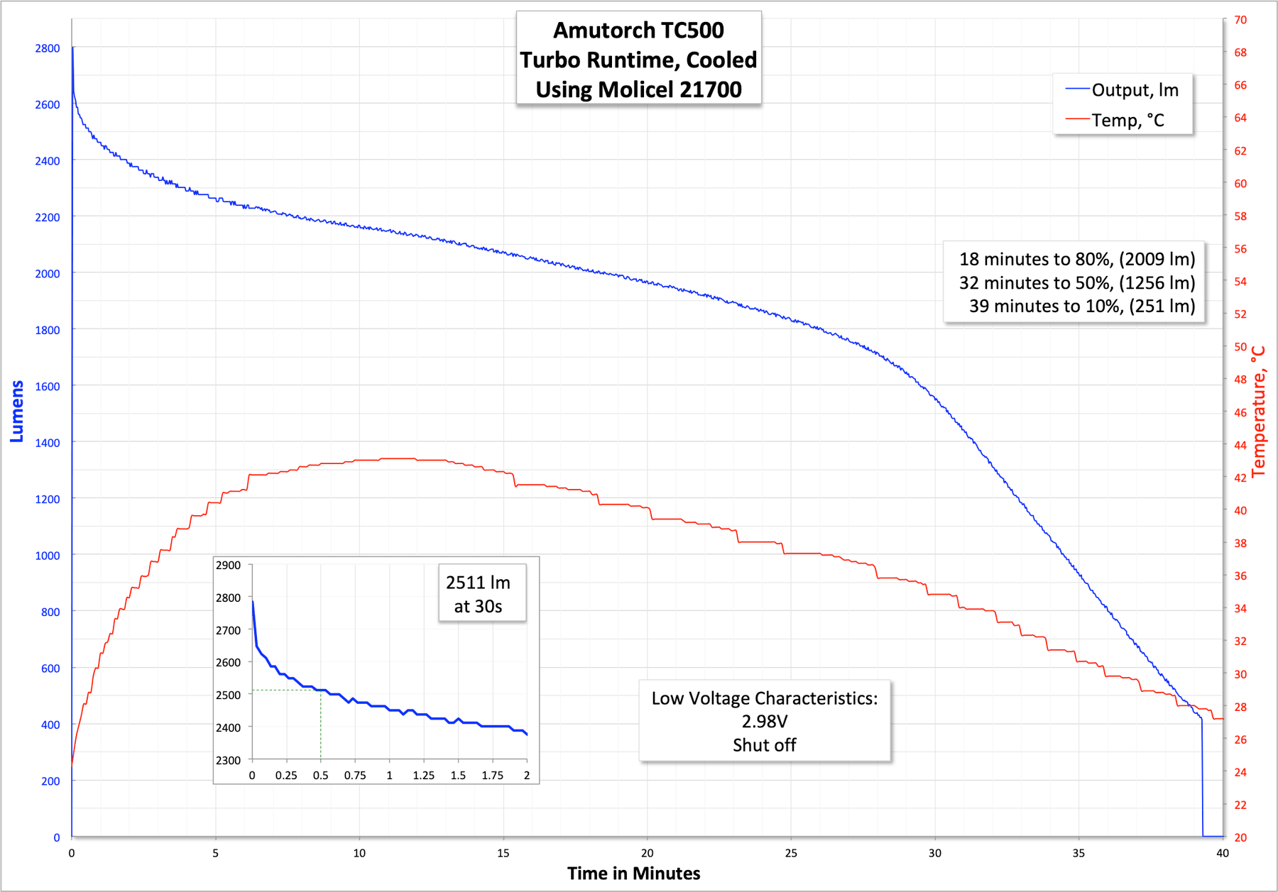 This light is a nice use of a 21700 cell and has a good throw (nearly 900m) to match. Not only that, the lumens are fairly ridiculous (at 2561), and well over the rating (of 2200).