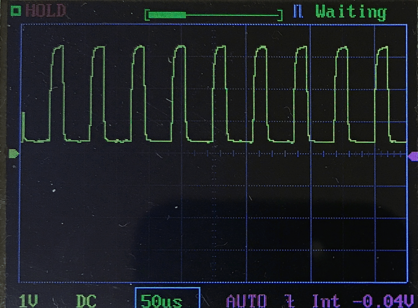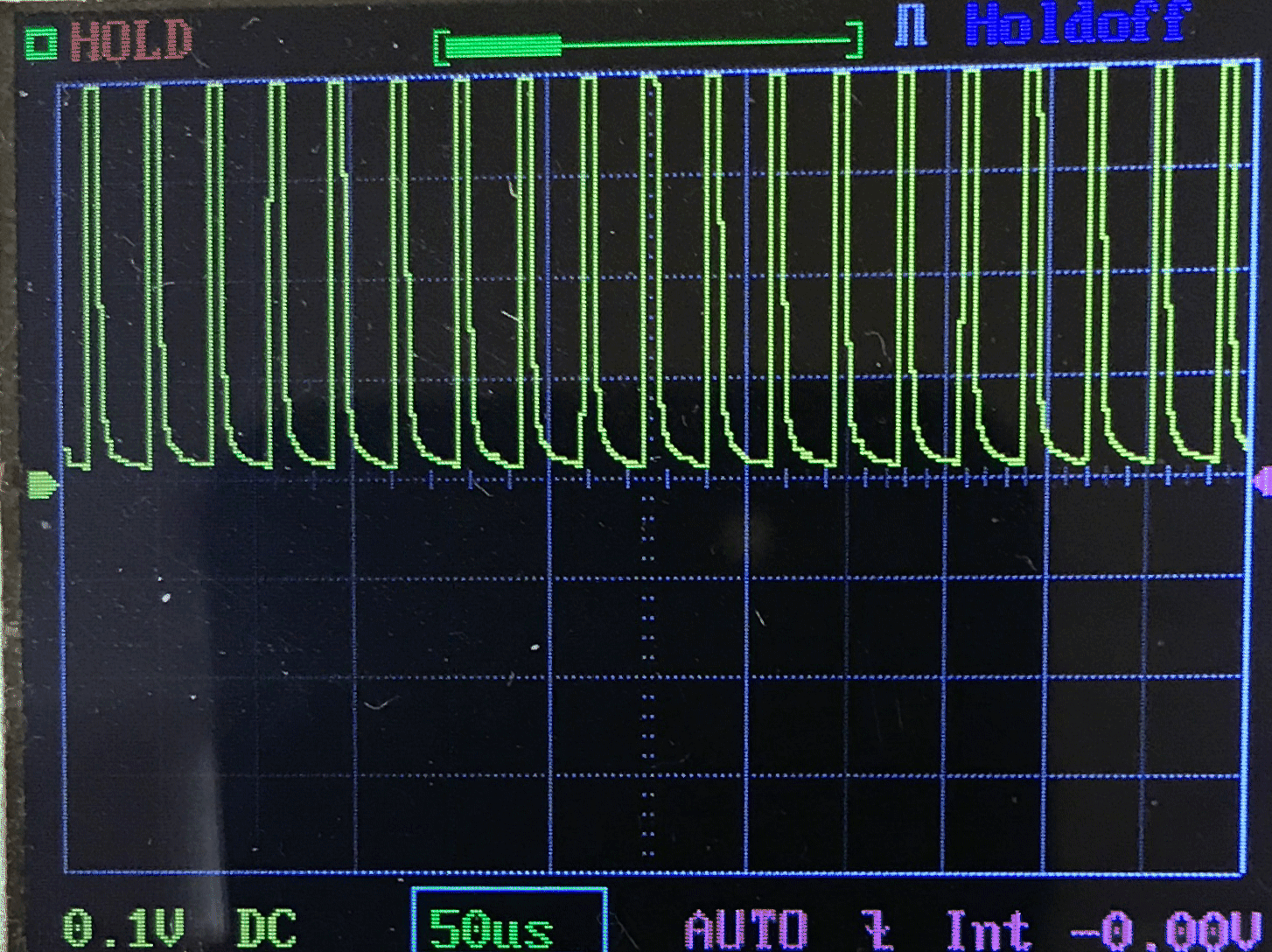 Then there’s the Ultrafire WF-602C flashlight, which has some of the worst PWM I’ve seen. It’s so bad that I used a post about it to explain PWM! Here are multiple timescales (10ms, 5ms, 2ms, 1ms, 0.5ms, 0.2ms) to make comparing this “worst” PWM light to the test light easier. That post also explains why I didn’t test the WF-602C at the usual 50us scale. And here’s the worst PWM light I have ever owned. Also one of the very first lights I ordered directly from China!