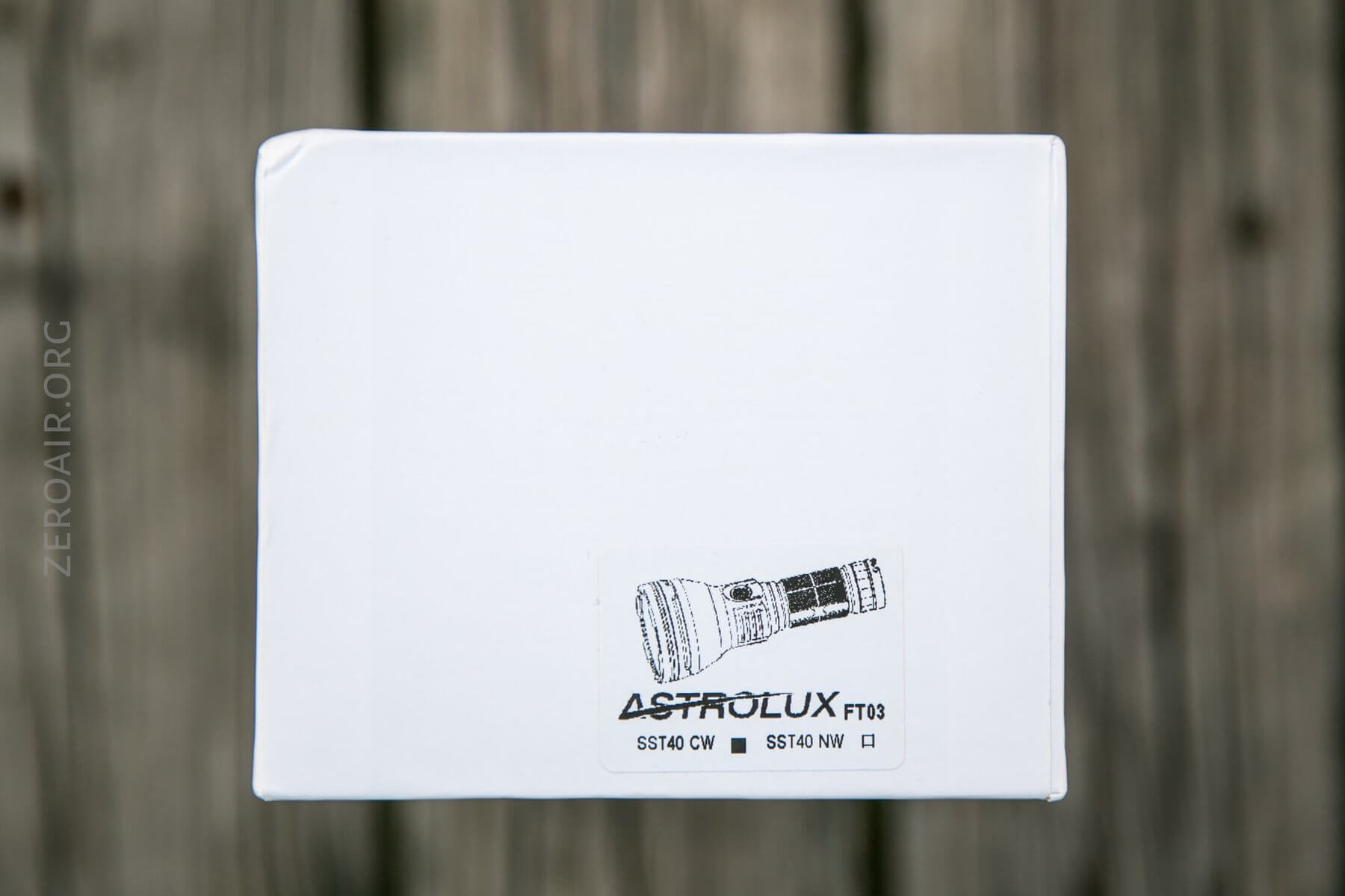 The FT03 ships in a nice Astrolux box, with the light illustration embossed. A sticker on the end describes the emitter tint, and on the bottom is an SKU sticker.