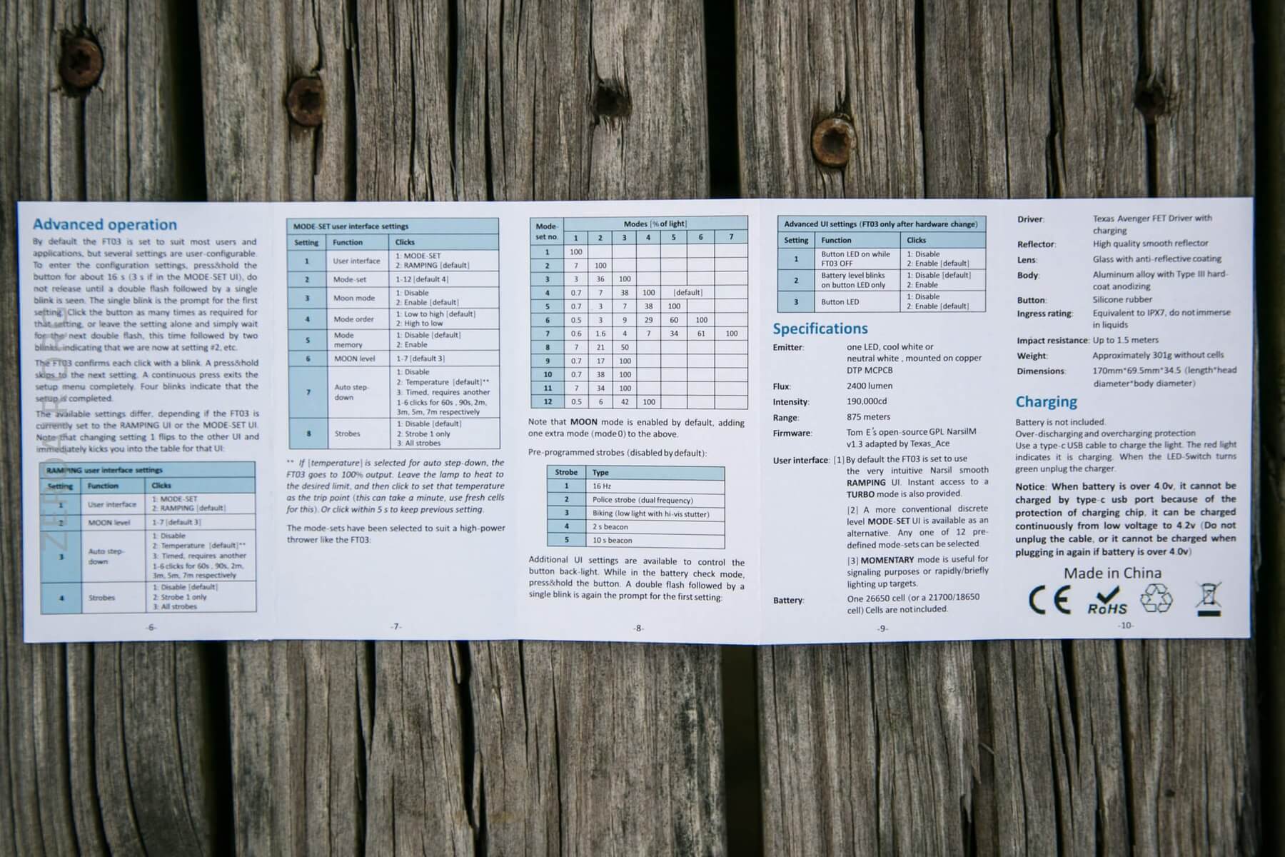 The manual is pretty and descriptive. It’s a manual that’s generally been used in other lights since the firmware is one Astrolux uses a lot. That’s fine… makes for nicely fleshed-out manuals.