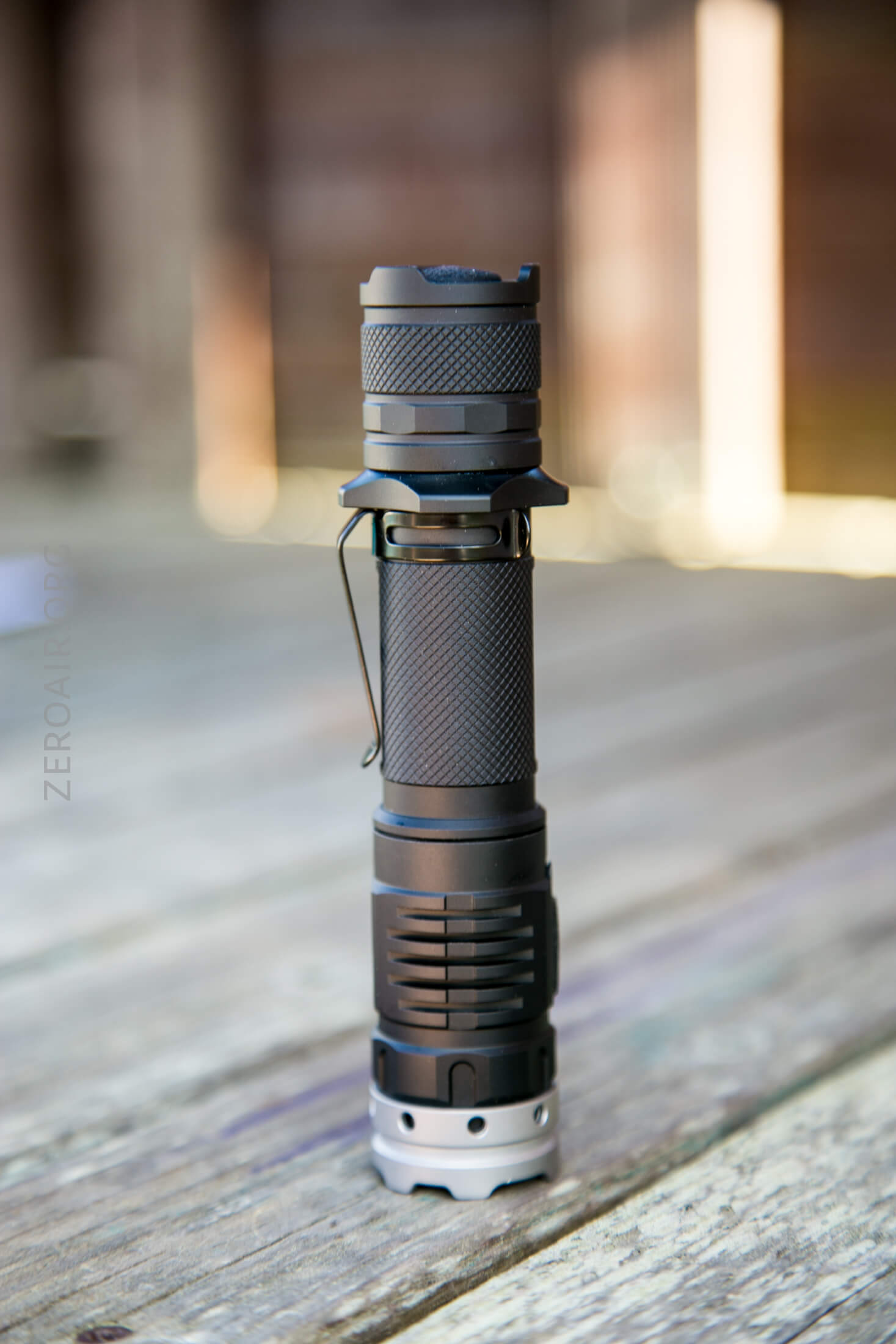One of the main things you might notice is that silver strike bezel. It’s easily removable, and reversible, and really a neat little attachment! The second thing you might notice is that the tailcap is quite thick! Has to do with all the electronics allowing charging, but yeah, in use it’s noticeably thicker.