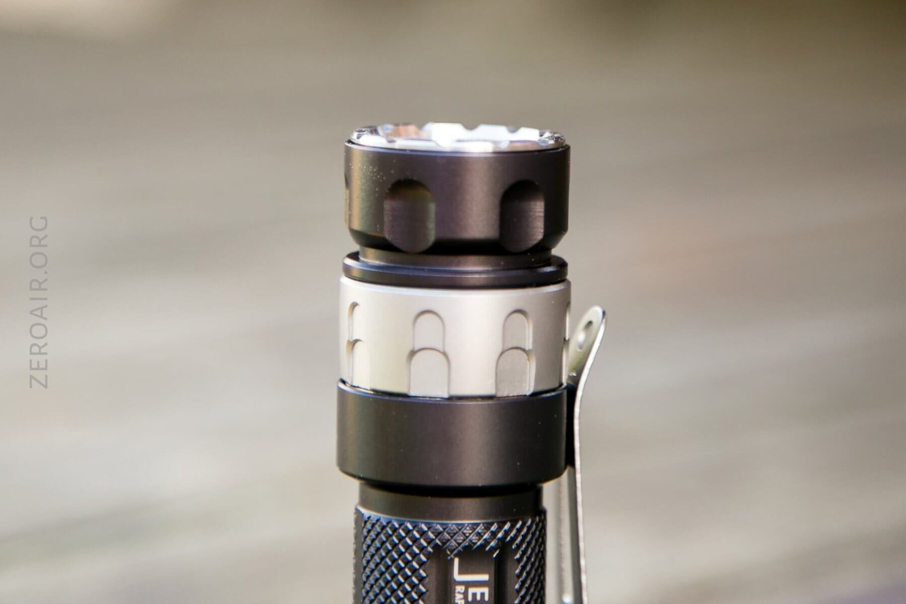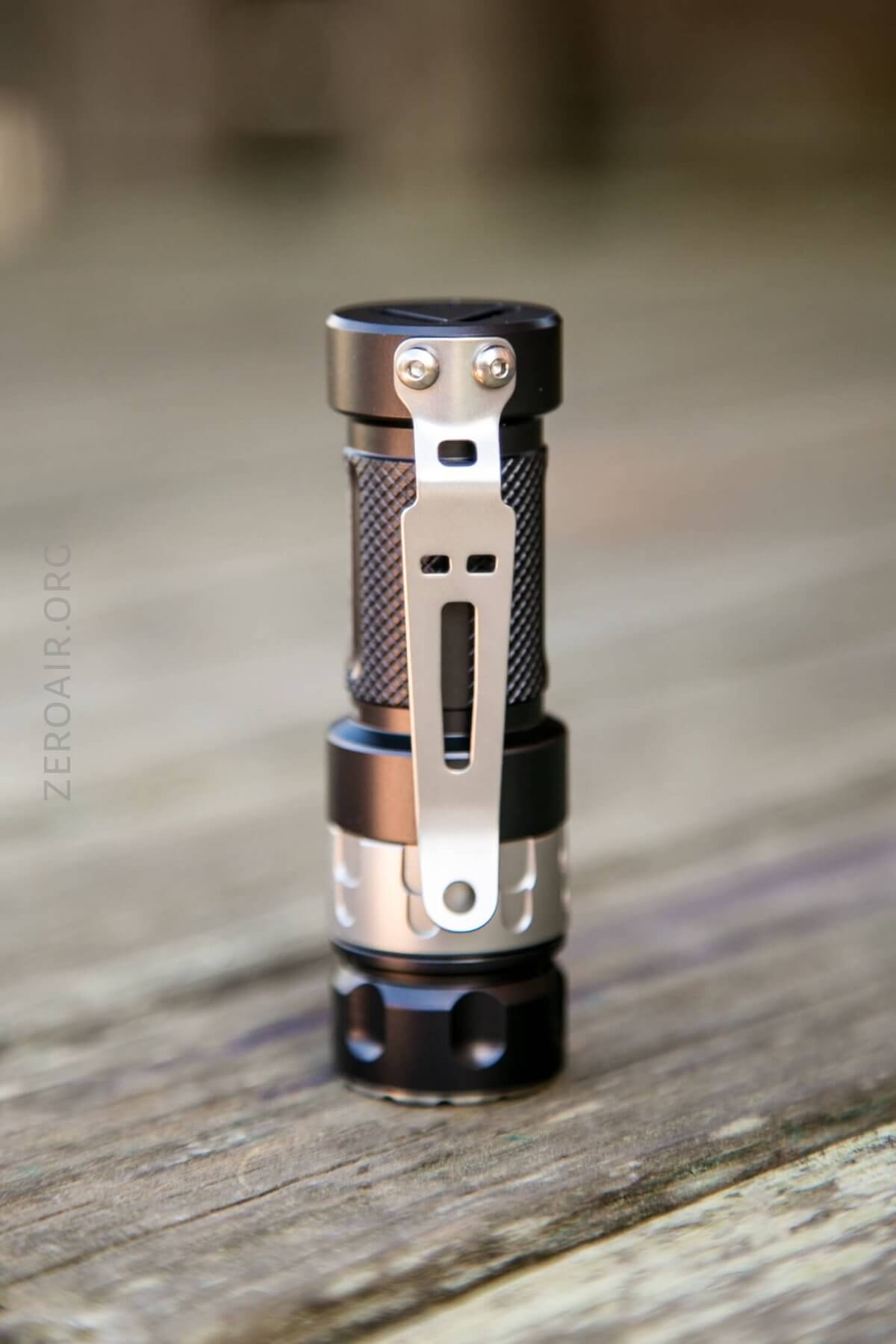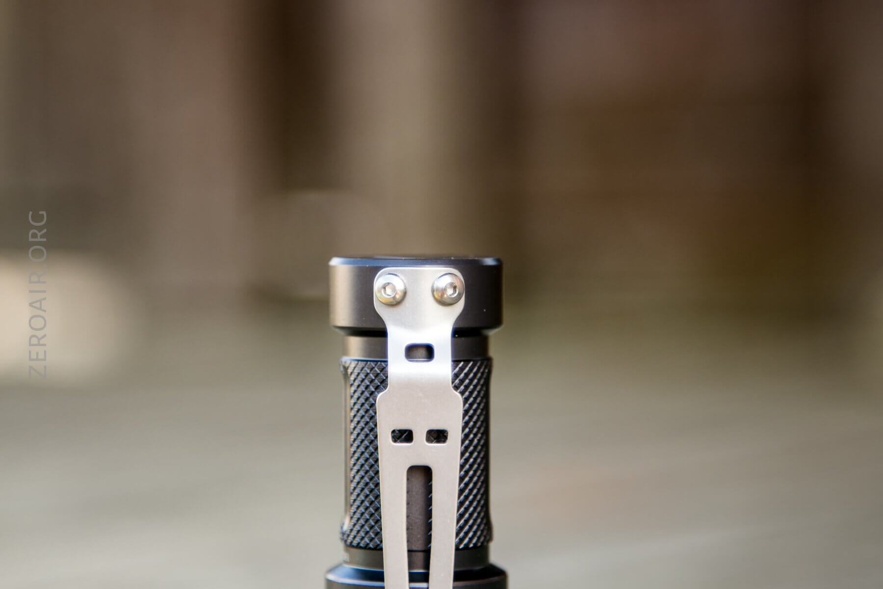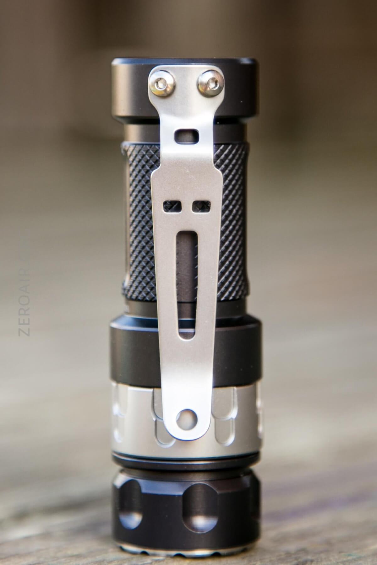 A pocket clip is included and attached, and interestingly it’s the “Steelflame standard” sized hole spacing. In fact, those clips (and Oveready clips, etc) work just fine on this light.