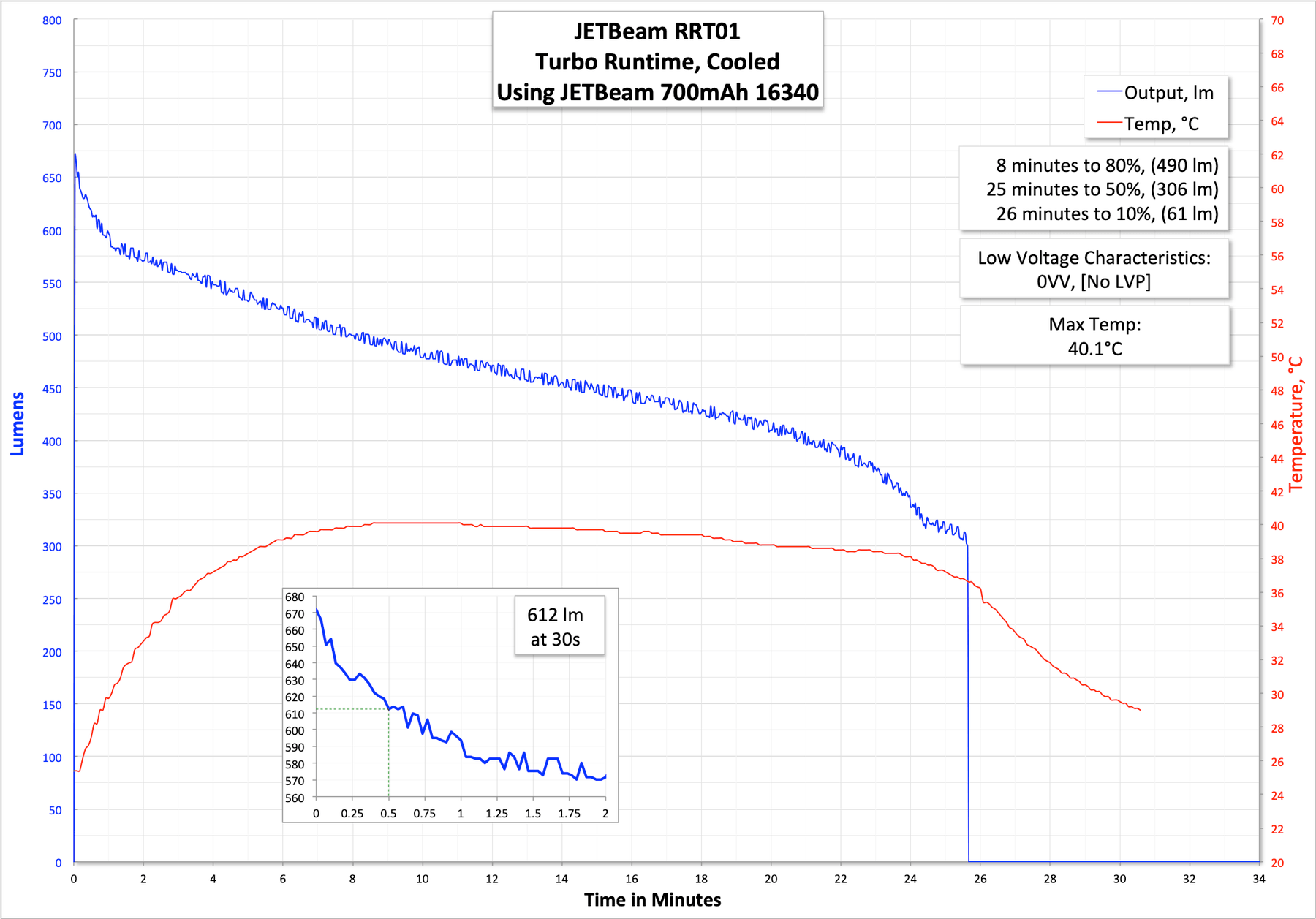 Here’s Turbo on the included cell. I didn’t test other modes with the included cell because, really, there are no other discrete modes. So it’d be fairly meaningless (though there is info we could glean).