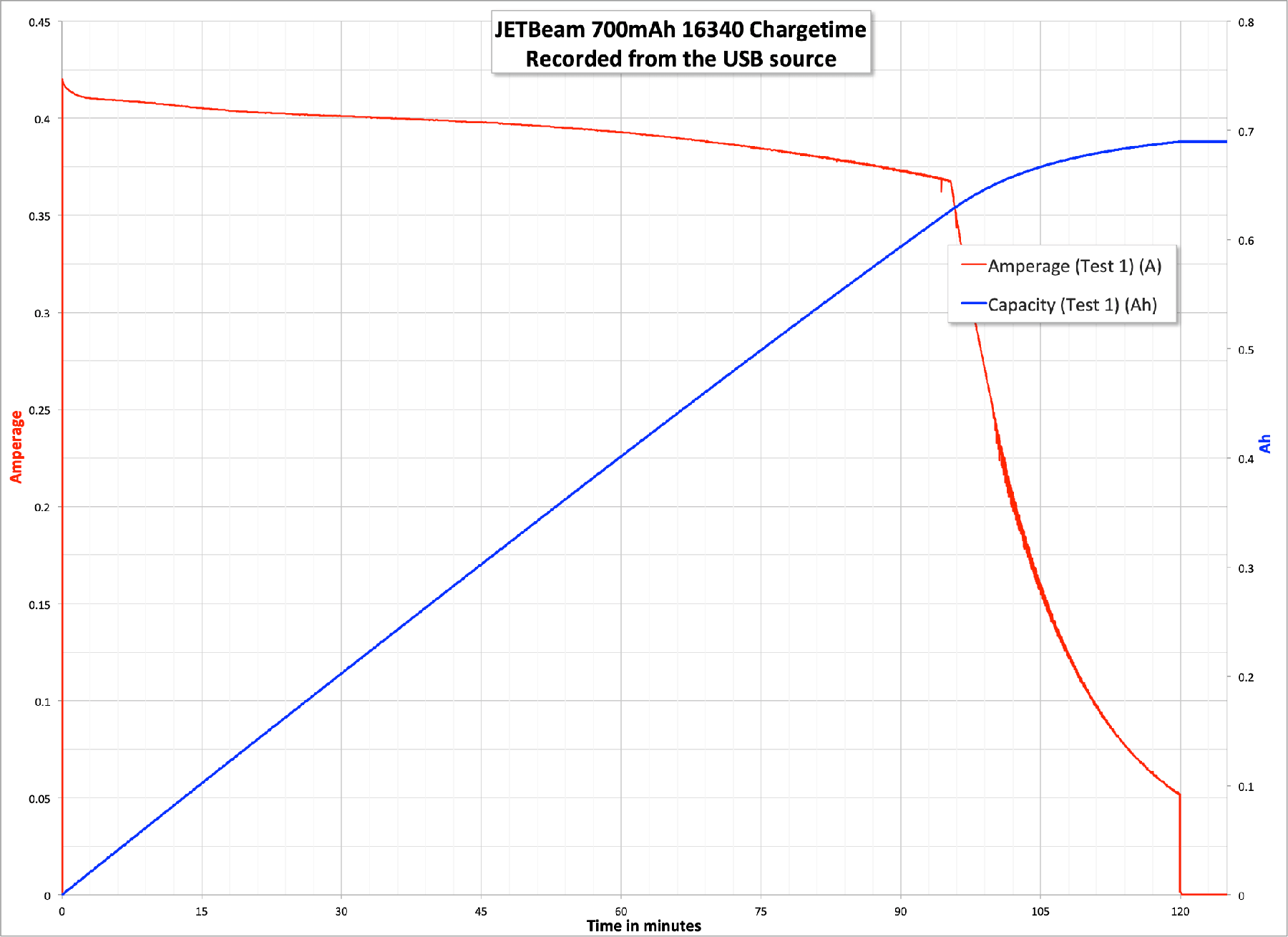 I only did one charge test with this cell, and it works just as it should. The charge rate is around 400mA during the CC phase, and capacity is proven at ~700mAh. Charging took a strangely specific 2 hours exactly.