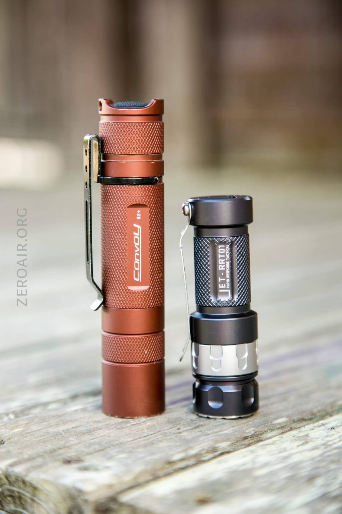 Unfortunately, I failed to take any photos with other 18350 lights. Side by side on my desk right now, I can say that the RRT01 is no bigger than a BOSS 35, which is a feat. Shorter, and possibly an mm or so thicker, but negligibly different.