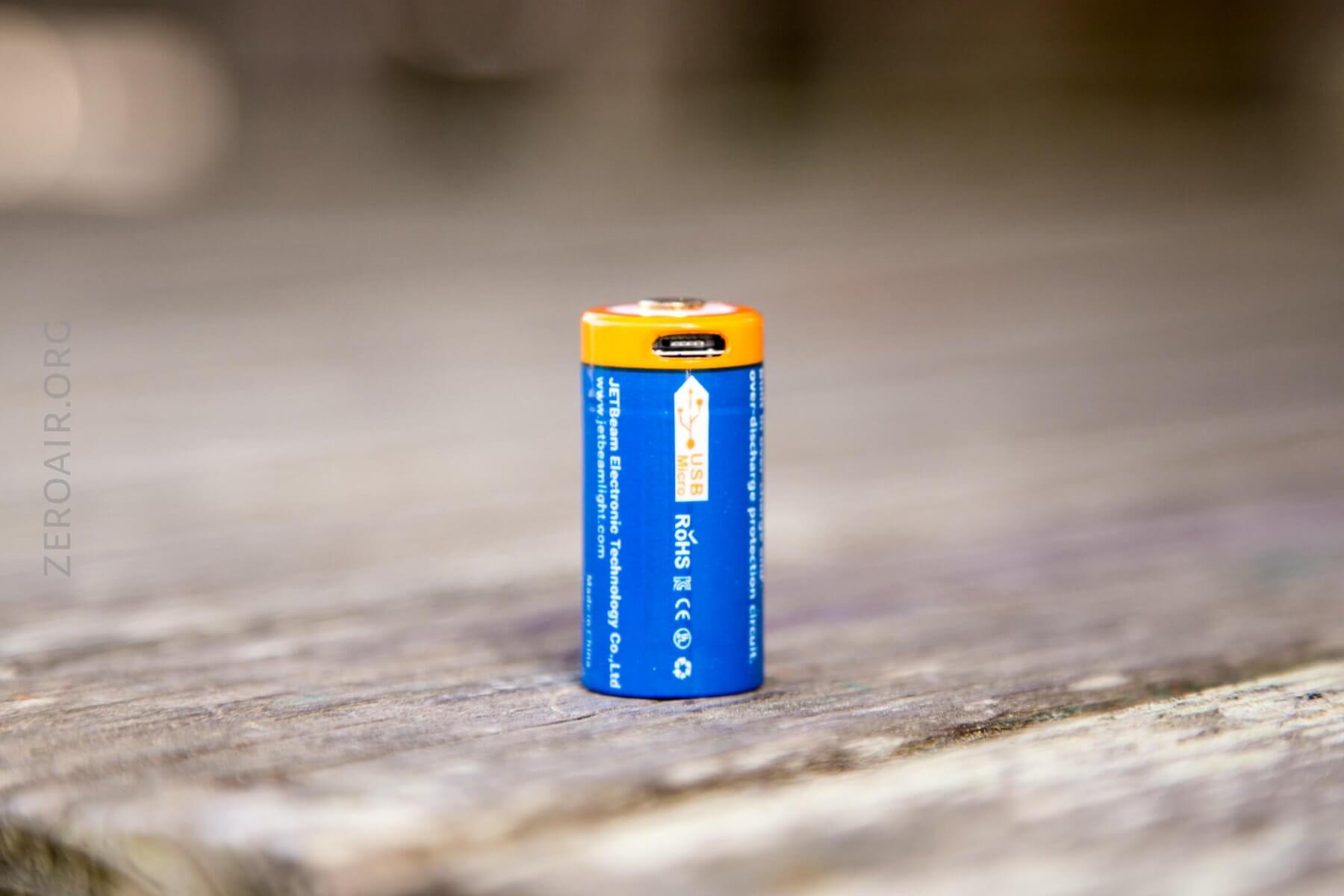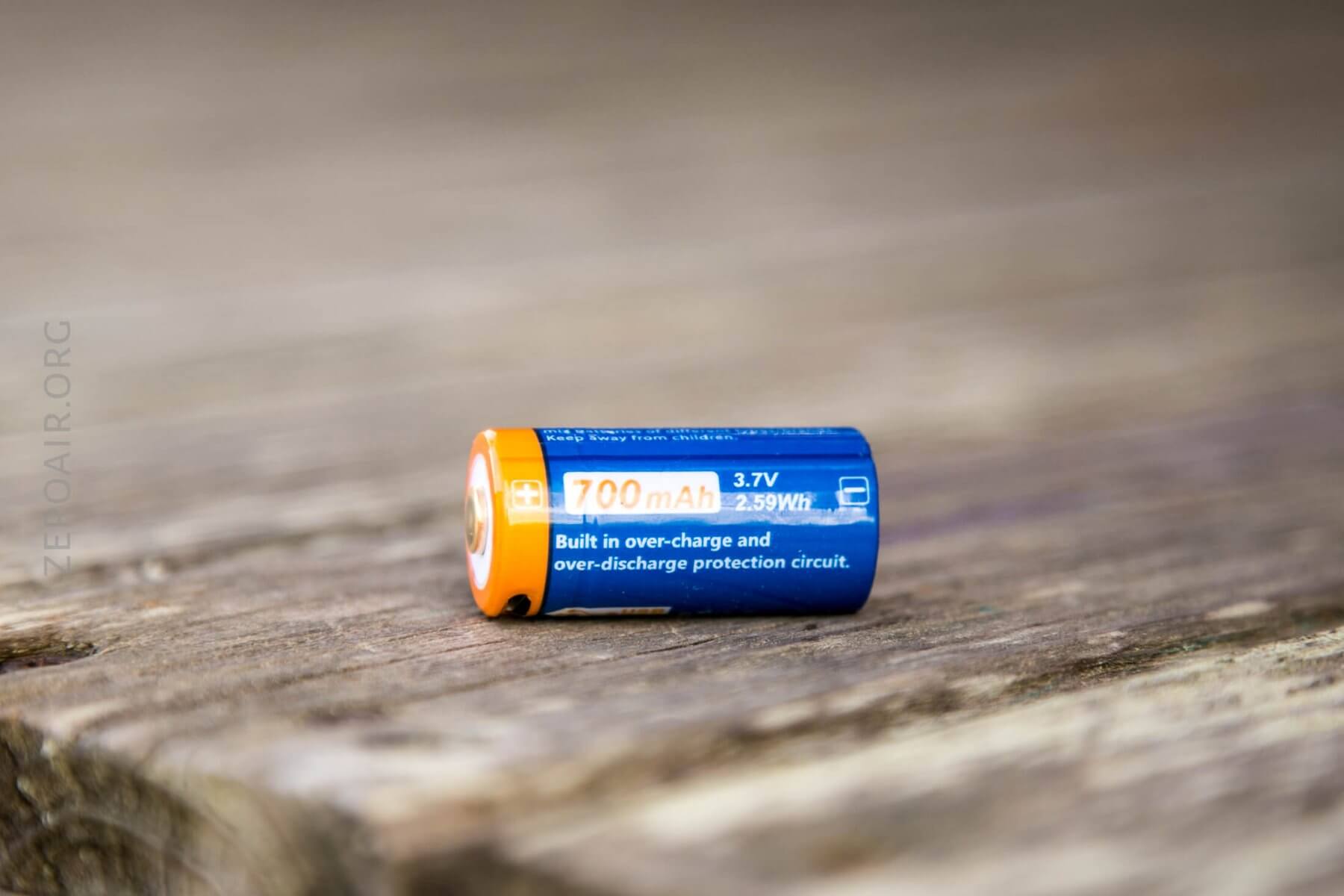 Here’s the included cell. Typical sized 16340 cell, but with a micro-USB port.