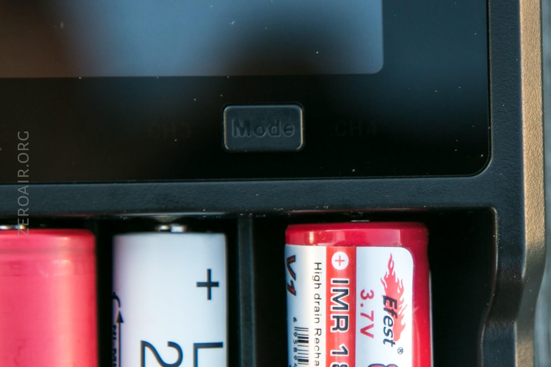 While a cell is in place, the circle displays show the cell voltage and the charge current. The unused bays show the voltage at zero, and the current at max possible for the bay if only a single cell is used.