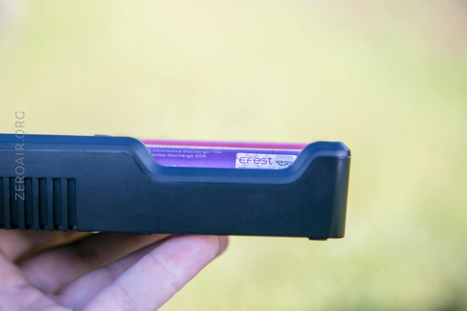 Note the two bays on the edges – those fit larger cells than the middle two bays.