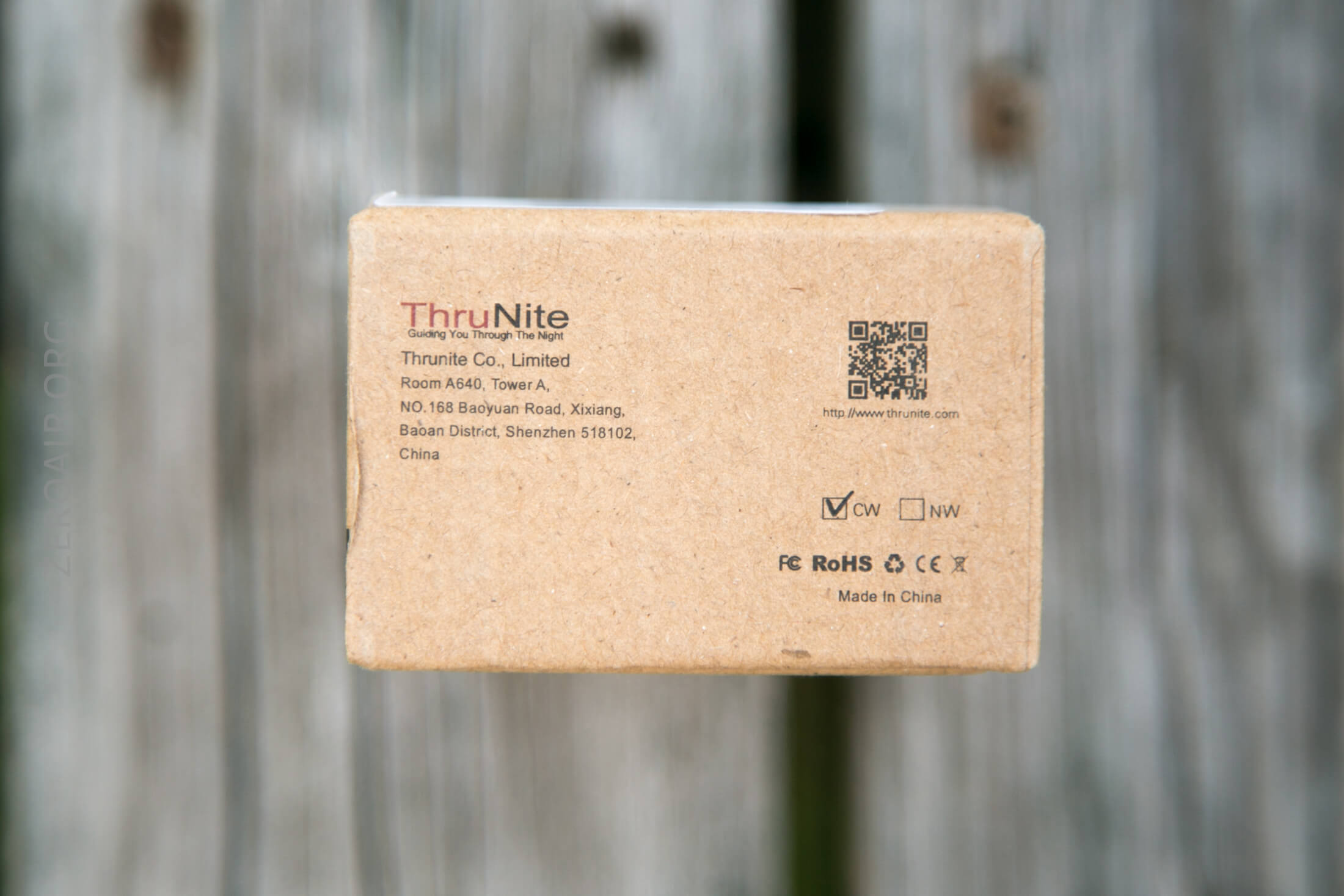 Standard Thrunite package. The end of the box includes CW/NW checkboxes.