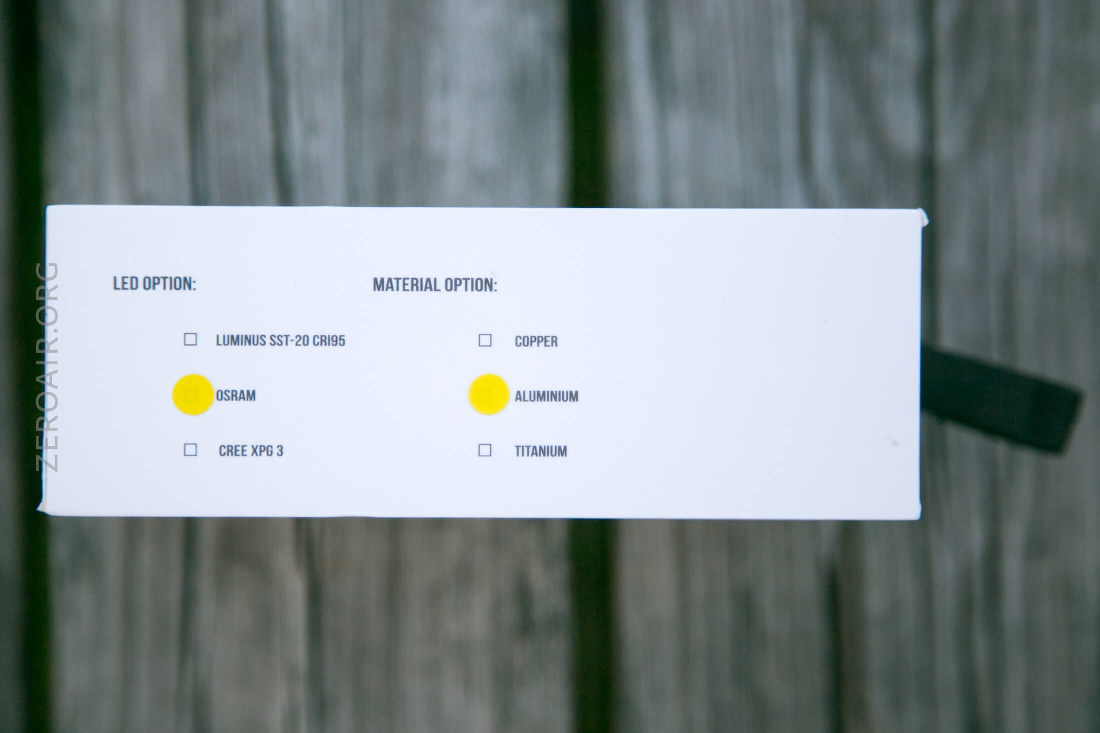 There are a number of versions. First, the emitters. There’s an Osram edition (seen in this review). There’s a Luminus SST20 High CRI edition. And there’s an option with Cree XP-G3.