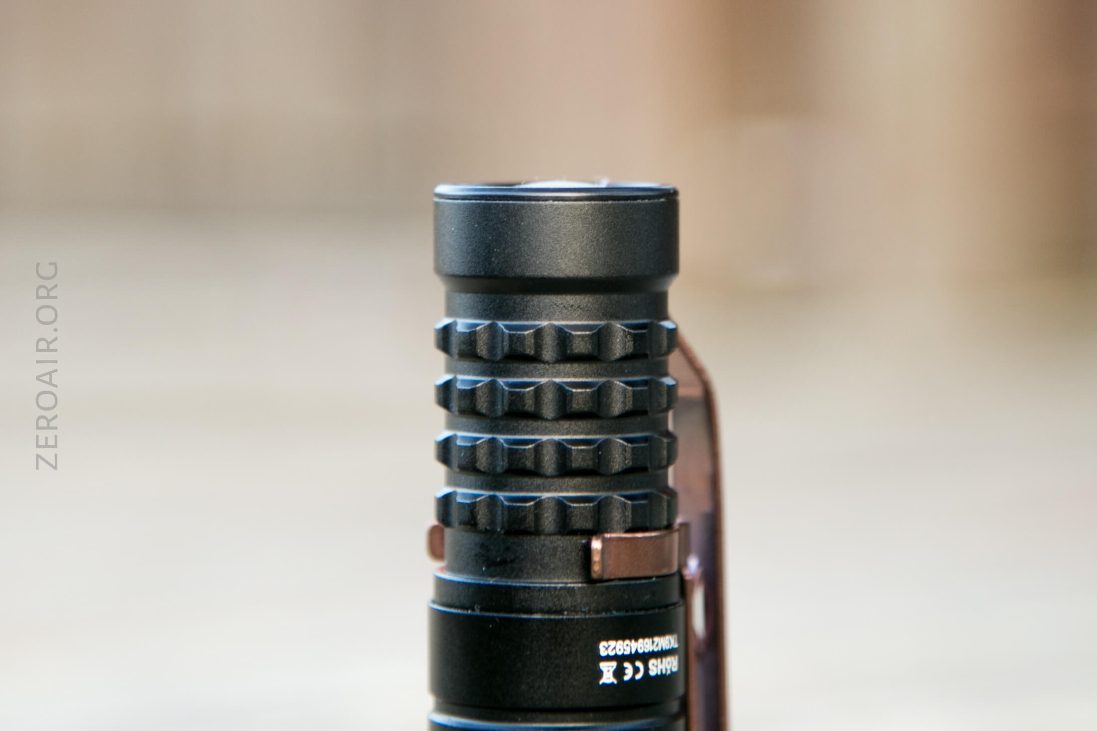 The light is a bit unusual with the big knurling squares on the body. These are grippy enough, but cause the light to have a bit of a texture overall that I just wish was…. regular knurling. If this was regular knurling, with the same diameter of light, I bet there’s an extra mm lost that would have allowed for 18350 cells. Food for thought.