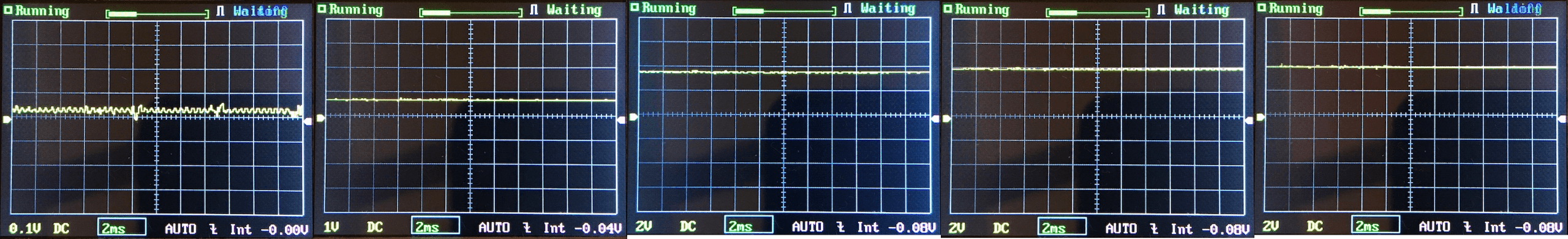 Then there’s the Ultrafire WF-602C flashlight, which has some of the worst PWM I’ve seen. It’s so bad that I used a post about it to explain PWM! Here are multiple timescales (10ms, 5ms, 2ms, 1ms, 0.5ms, 0.2ms) to make comparing this “worst” PWM light to the test light easier. That post also explains why I didn’t test the WF-602C at the usual 50us scale.