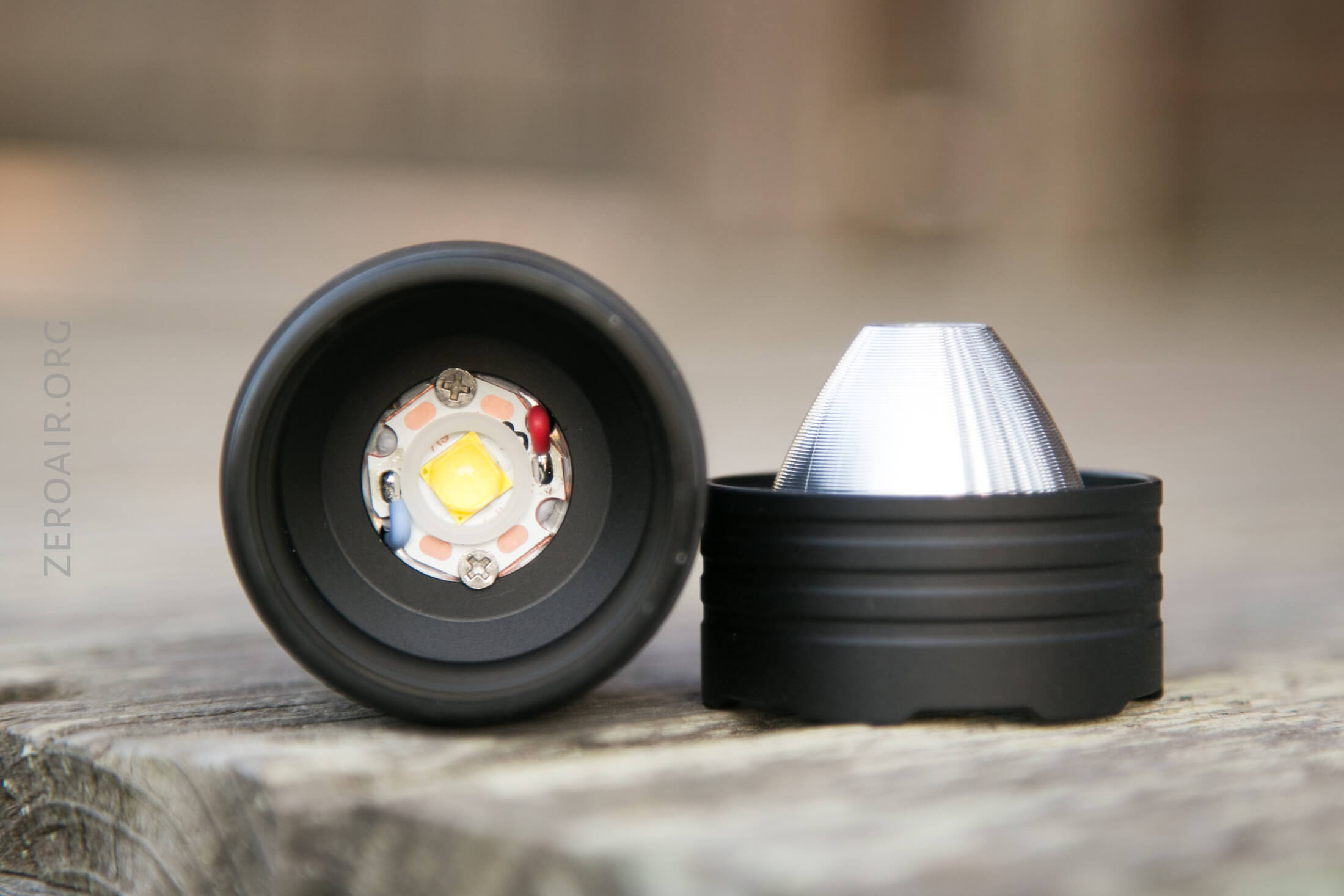 The big bezel unscrews easily and reveals the emitter, reflector, and lens.
