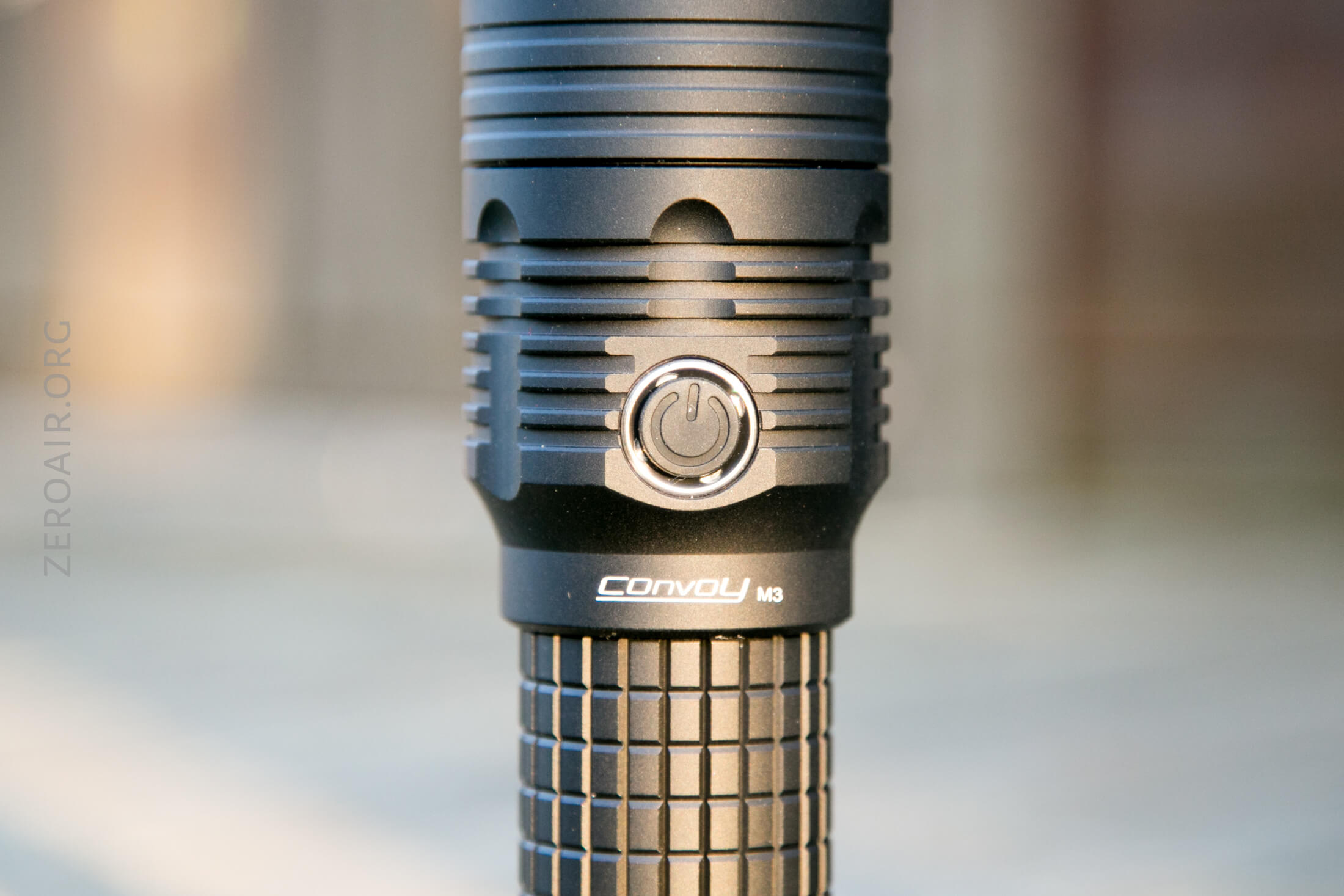 There’s a single switch on the Convoy M3. It’s on the head, and it’s a very clicky e-switch. The cover is black, and it is not translucent.