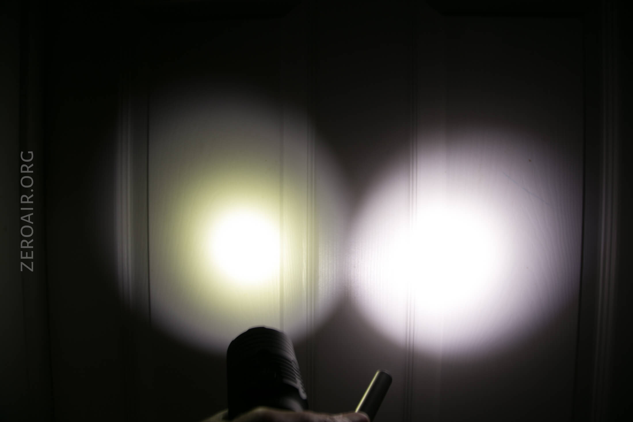 Here’s the test light with the venerable Convoy S2+. Mine’s a custom “baked” edition Nichia 219b triple. A very nice 18650 light.