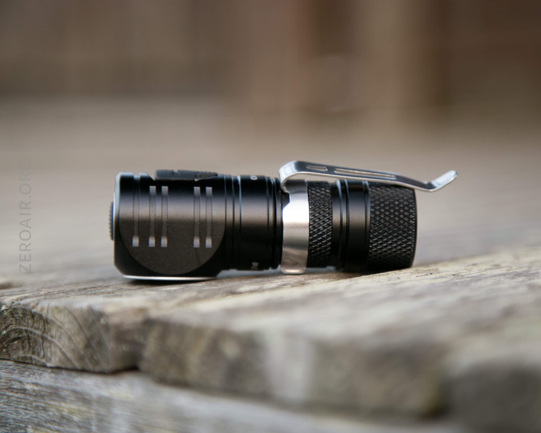 The pocket clip also has a home on the 18350 body, but only one orientation makes good sense. Bezel down. Otherwise, the clip will hang off the body, and the light will stick much too far out of a pocket. However, it will hold in this orientation, so as a downlight on a cap (etc), it could still be useful this way.