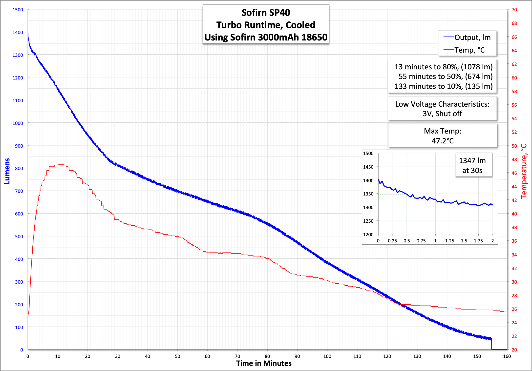 2.9V to 3V LVP é for HIGH and TURBO respectively. For MEDIUM I measured below 2.8V and manually turned it off. I wander whats is the LOW voltage protection.