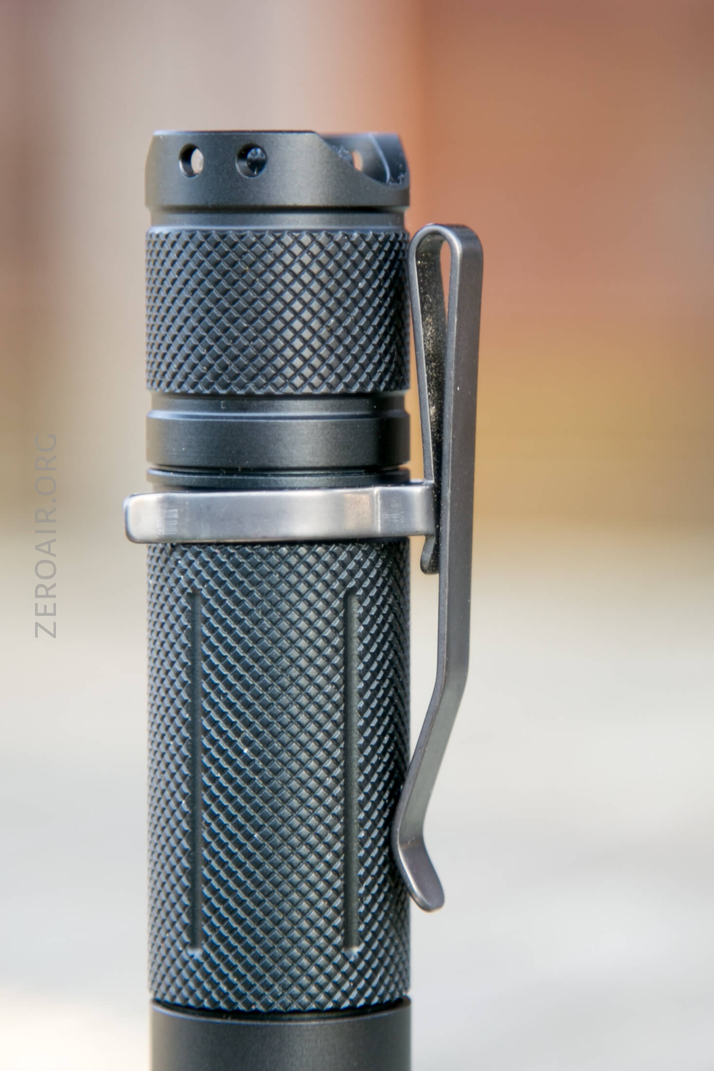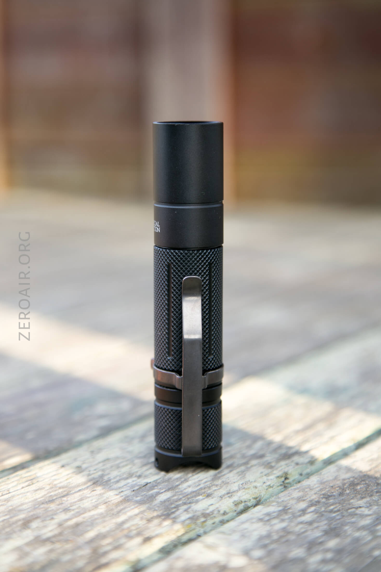 The cell tube isn’t reversible, and the clip only fits on the tail end. That means this is a bezel-down only light, which is my preferred carry anyway.