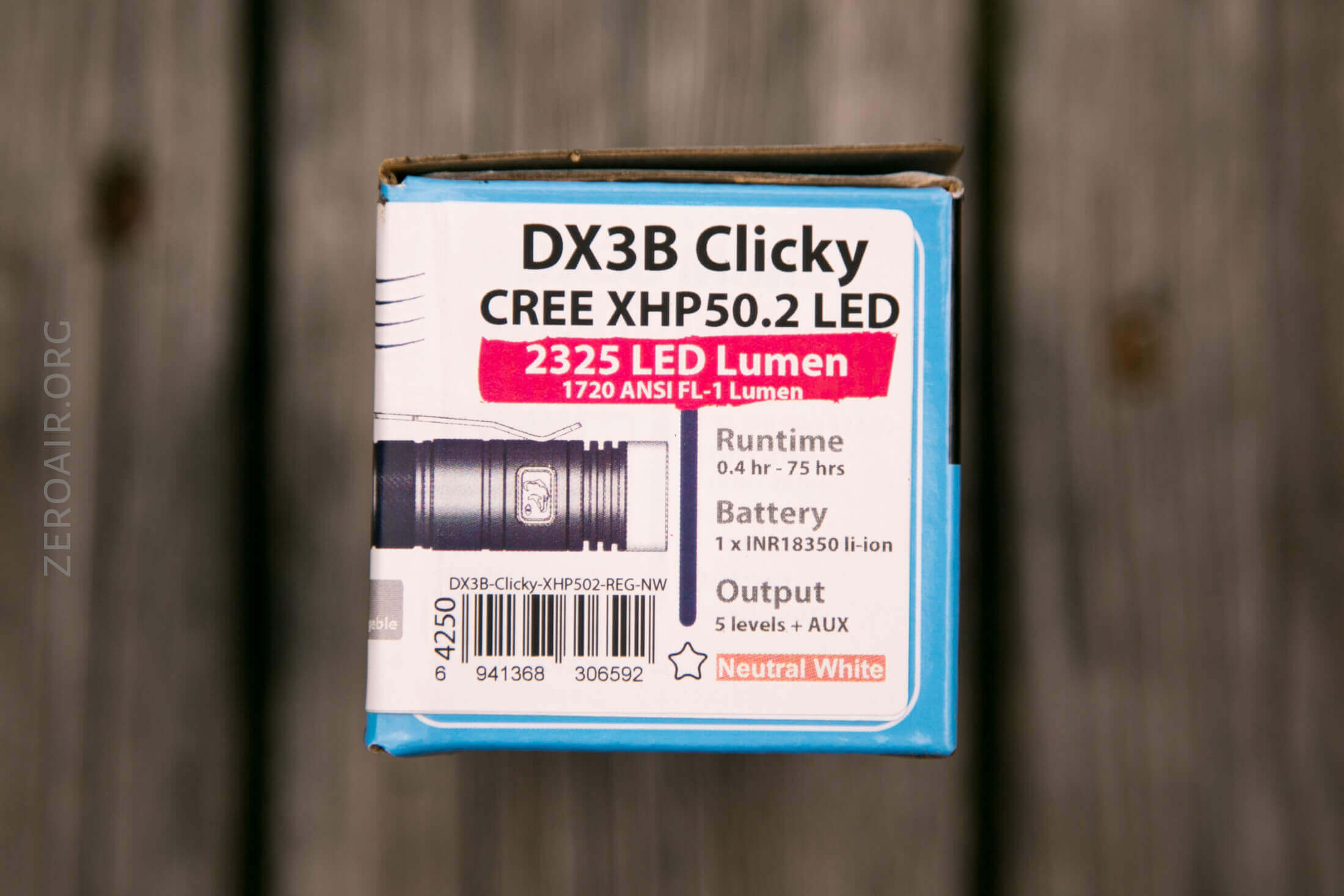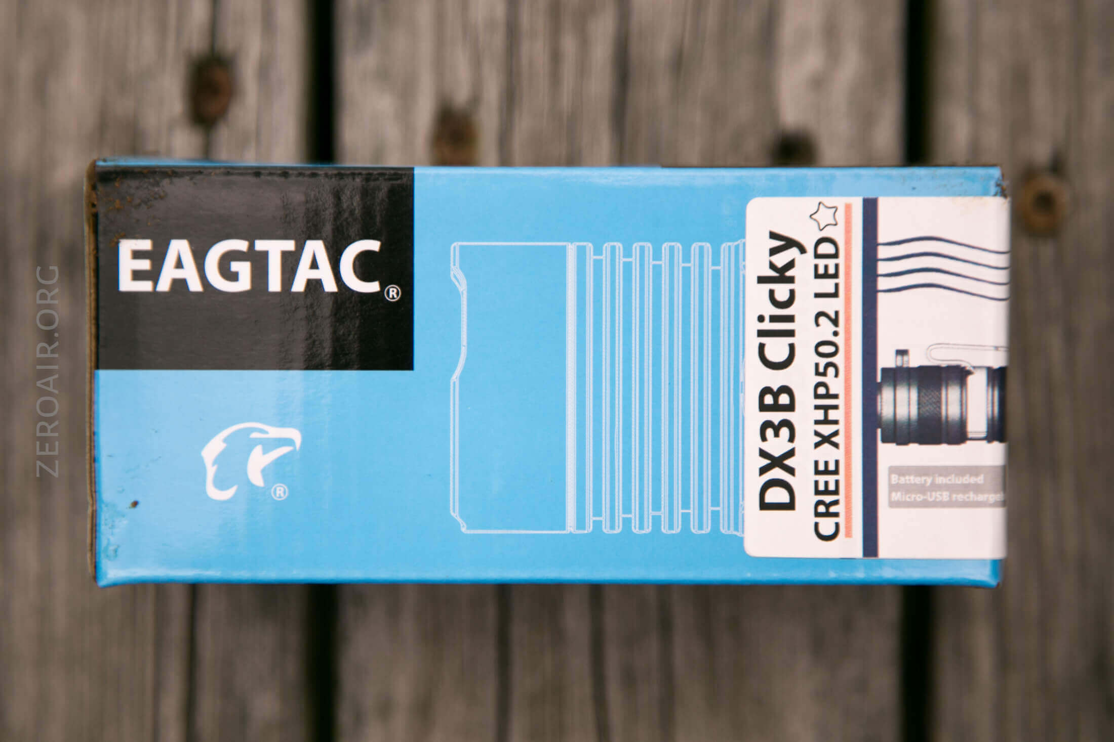 This light ships in Eagtacs standard package. A blue box with a model-specific sticker. Inside is also cardboard, which means this package is very recyclable – a great thing. (Unless you’re like me and just keep the package anyway, which maybe renders the point moot?)