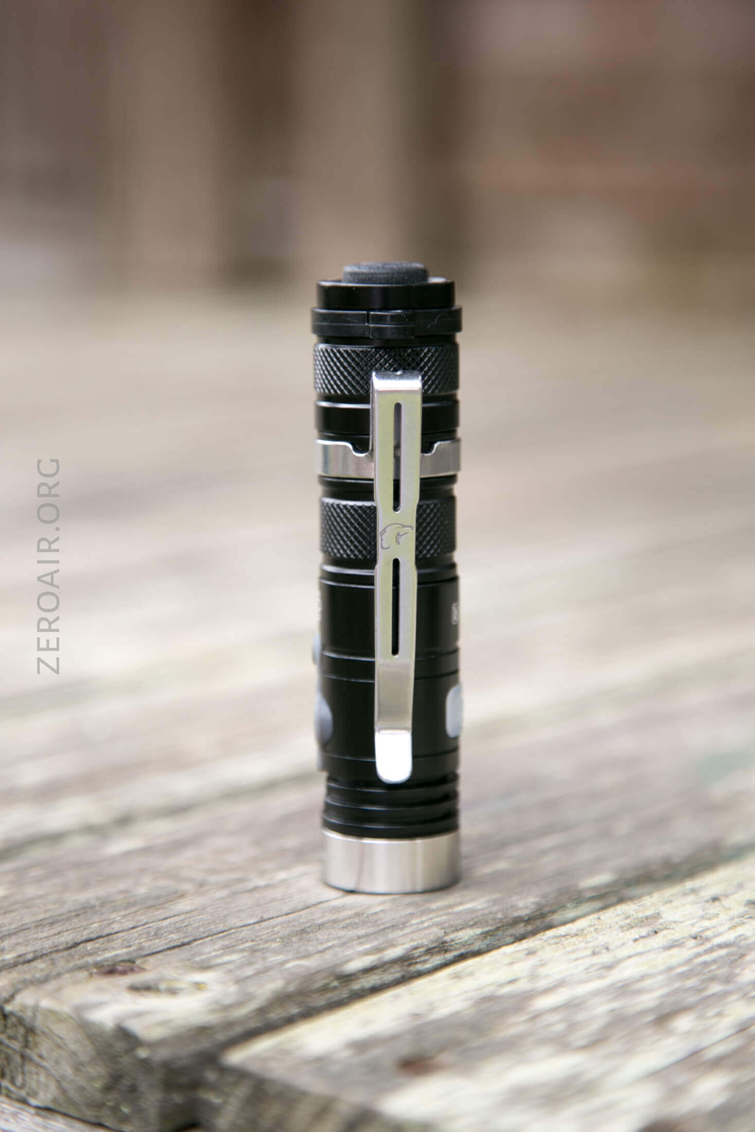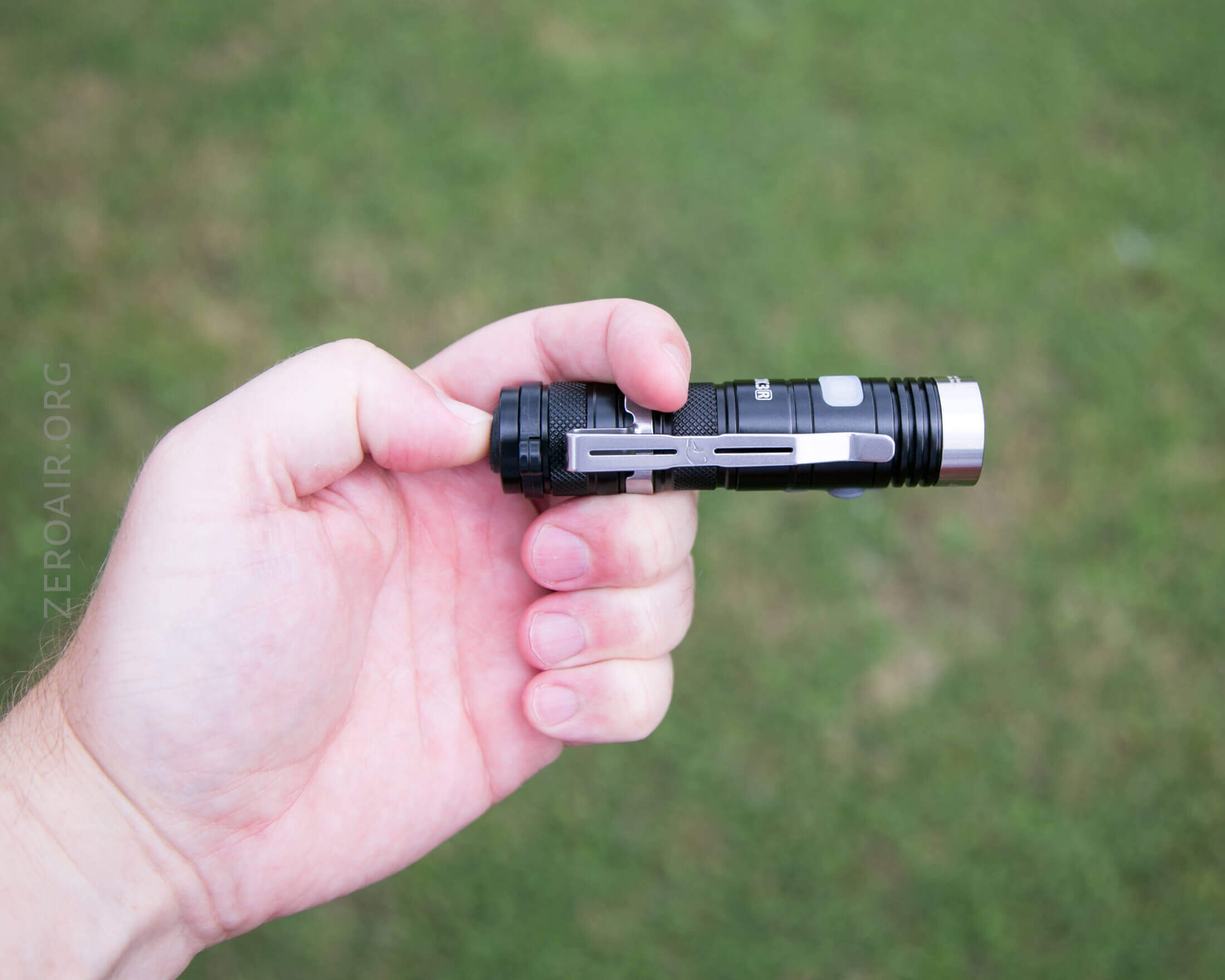 The main way to carry this light is the pocket clip. It’s a friction fit clip, and quite long. A good amount of light sticks out of the pocket when clipped, but due to the length of the light, it’s not top-heavy at all.