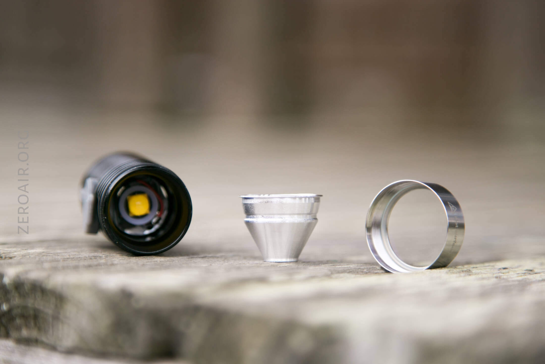 Here’s the test light with the venerable Convoy S2+. Mine’s a custom “baked” edition Nichia 219b triple. A very nice 18650 light.