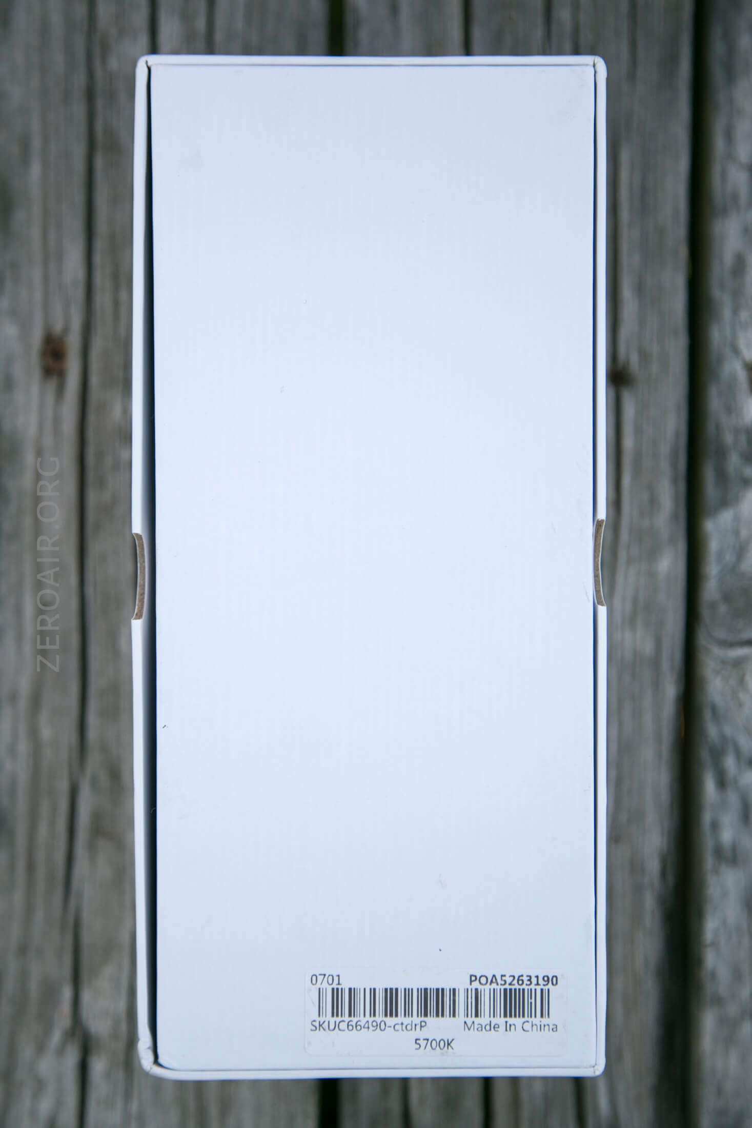 The emitter in this copy is a Cree XHP50.2. Mine is stated at 5700K, and is cool and … looks on the wall like an XHP50.2. The reflector is smooth, deep, and wide.