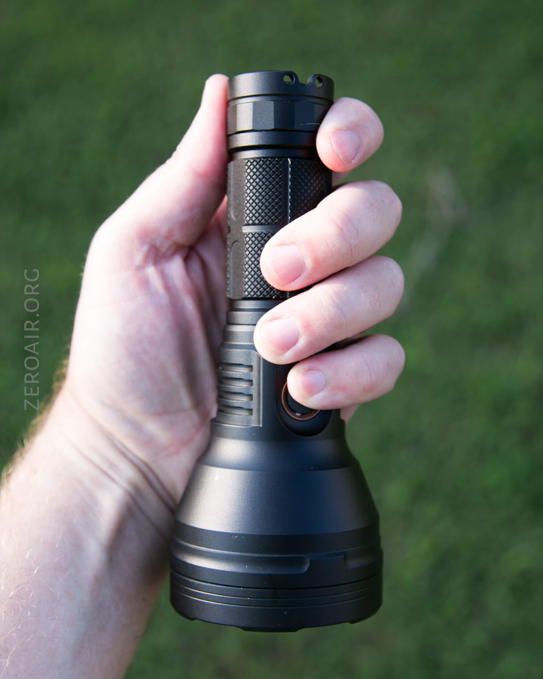 The anodizing feels nice. Slick, smooth. Not overdone with knurling, not overdone with fins in the head.