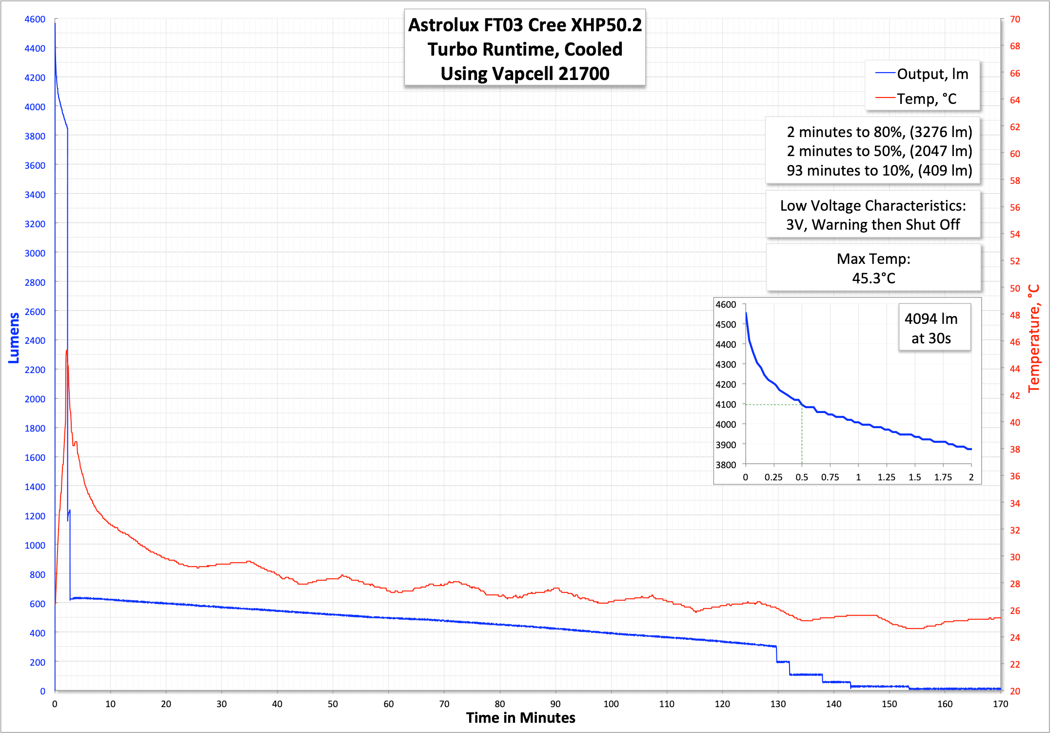 | Measured Lumens (at 30s) | 4094 (95.2% of claim)^ |