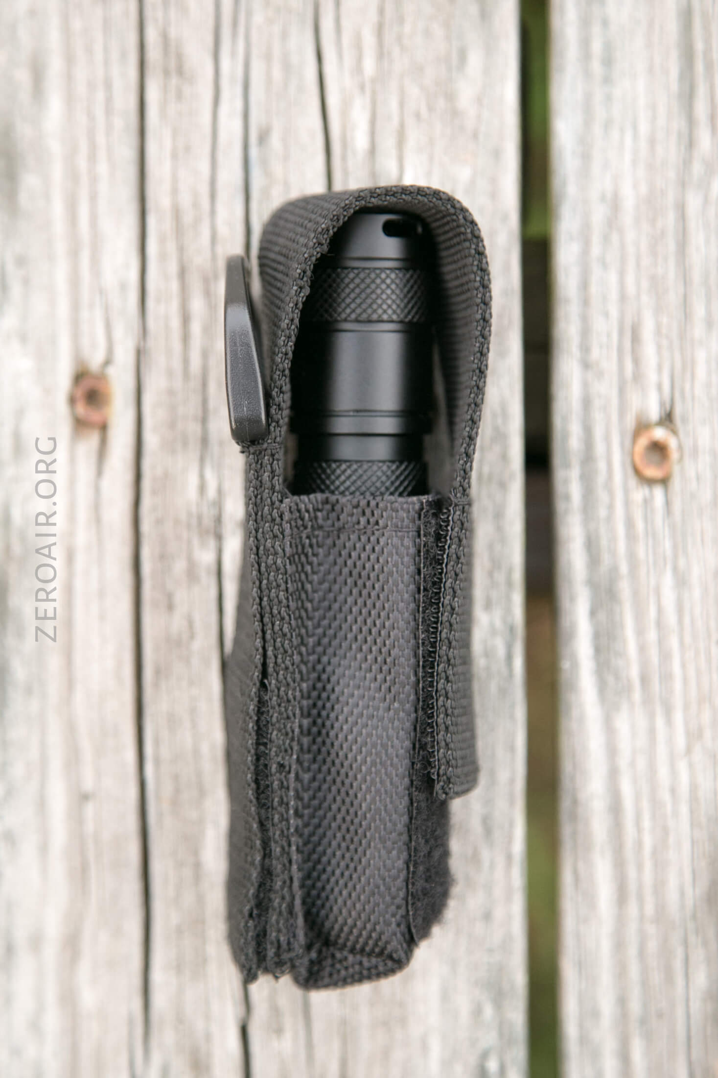 Included is this nylon pouch, in which the NM01 will fit bezel up or down.  Without the clip the light goes in very easily.