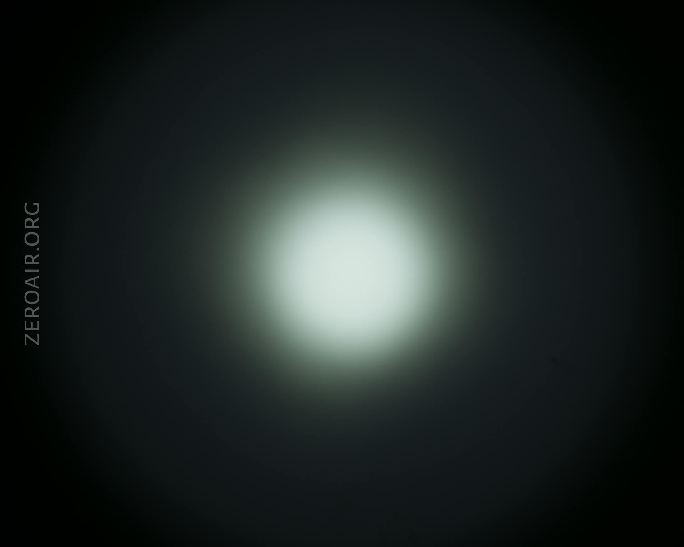 The emitter here is a Cree XP-L HD.  The reflector is smooth.  This makes a beam with a mostly hot-spot profile, but a bit of spill.
