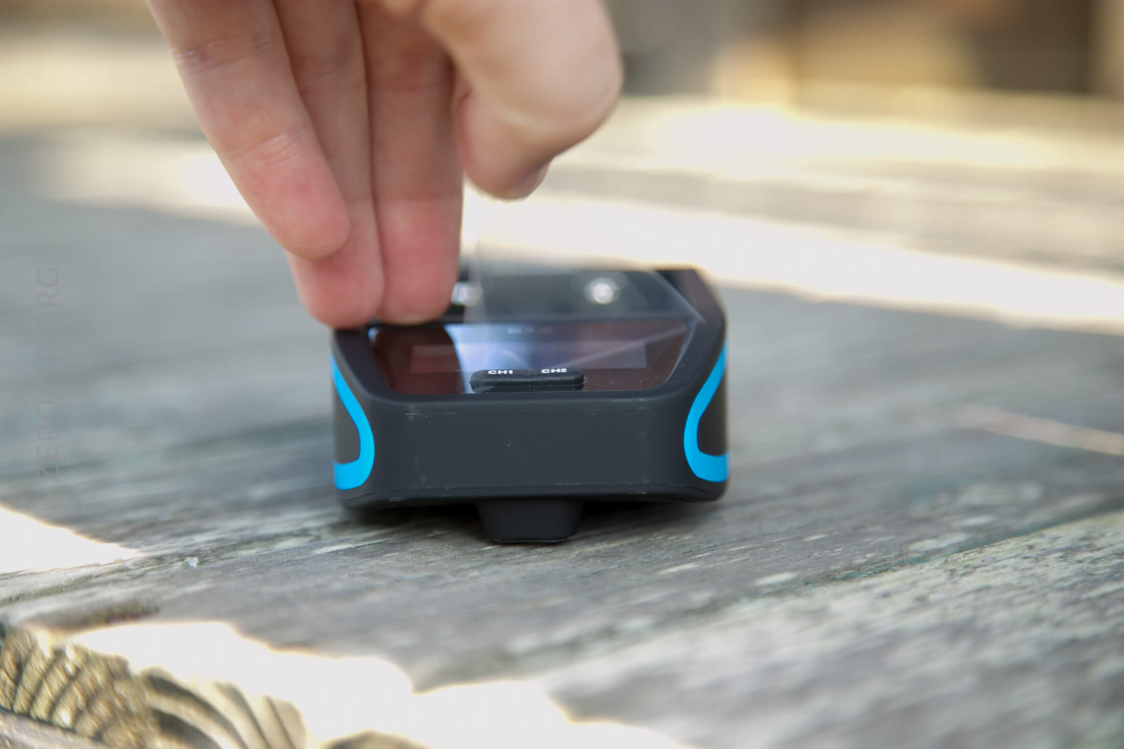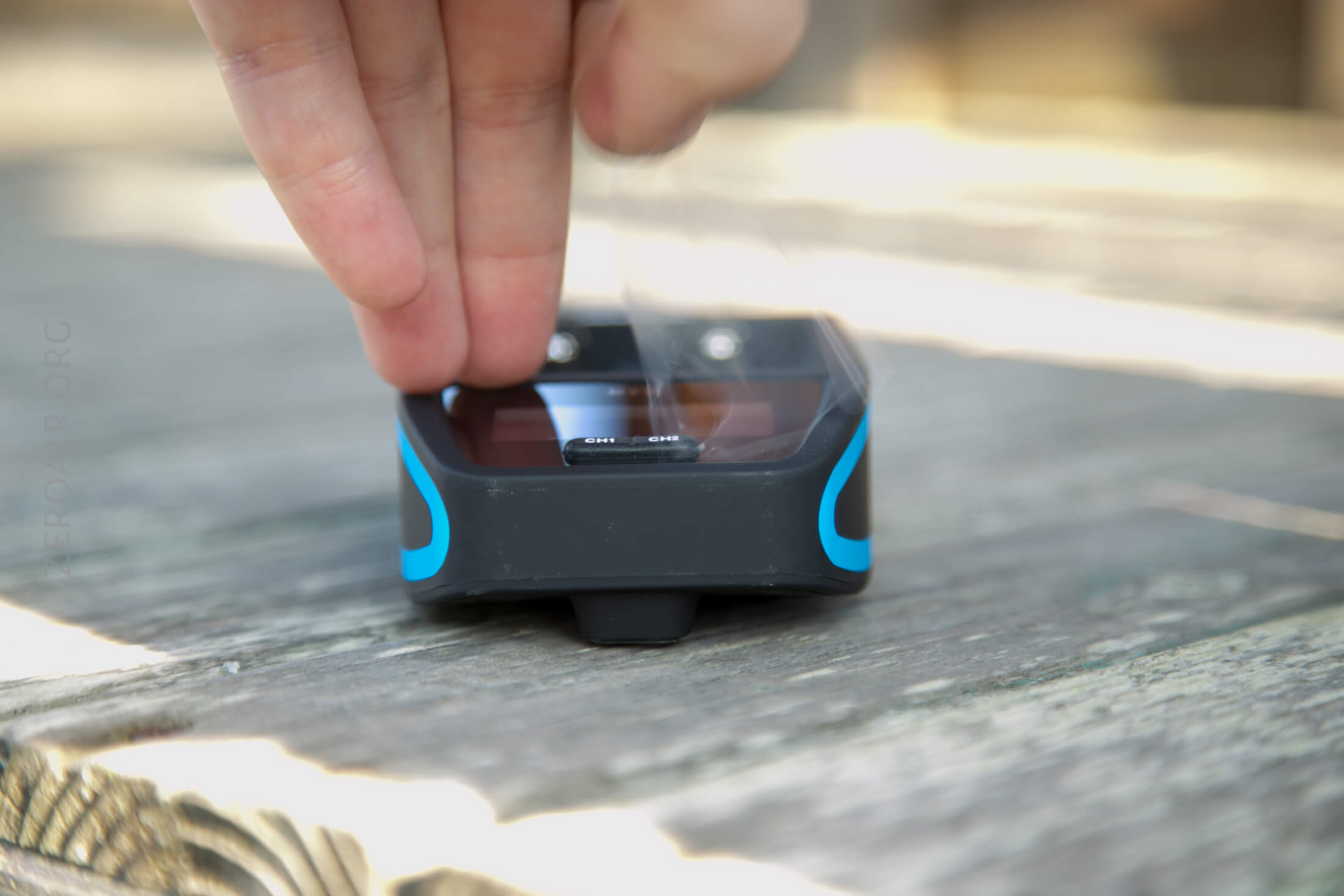 Holding the button (either button) will turn the backlight off (something you’ll probably want to do; it’s bright). Any further click brings it back bright.