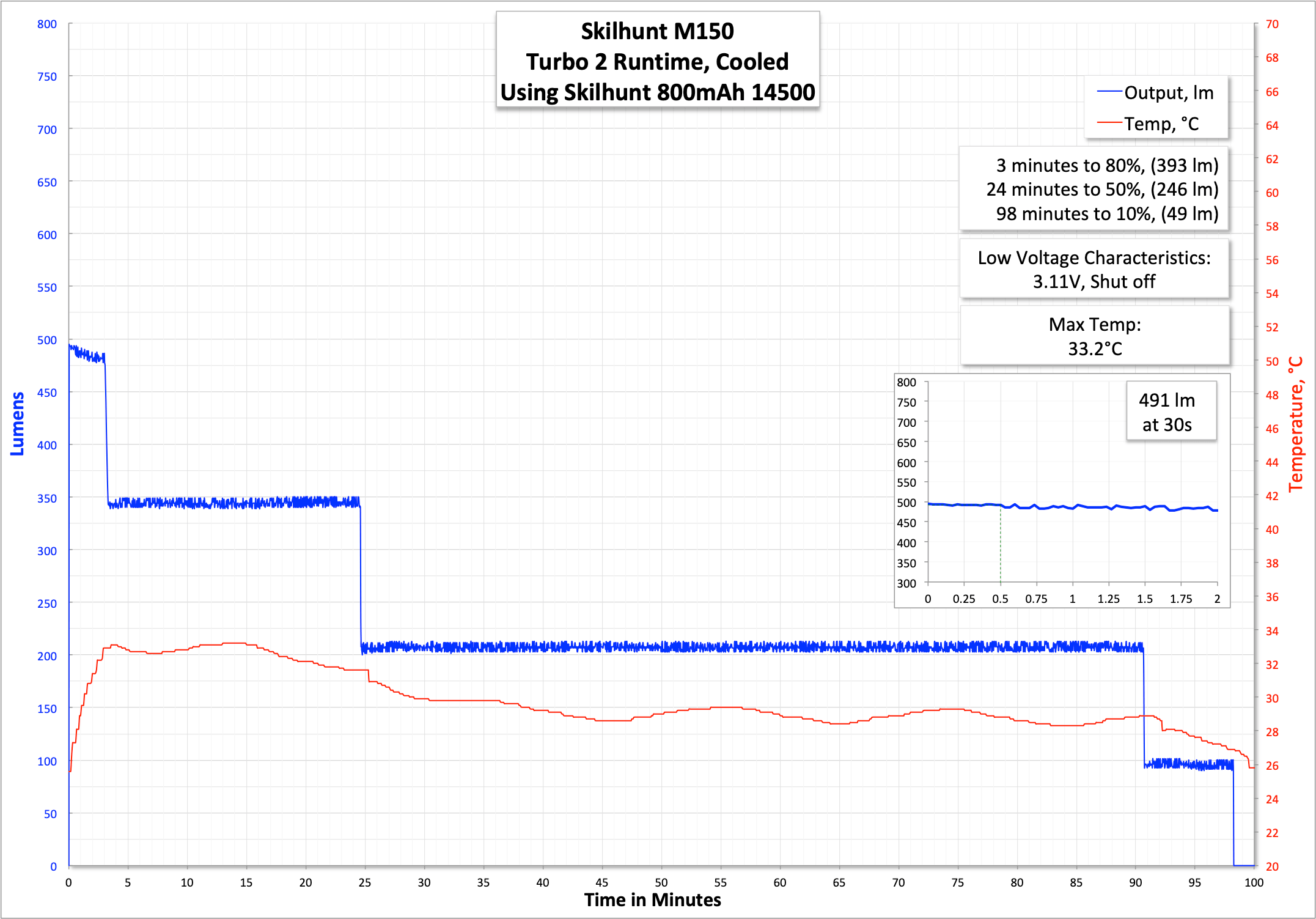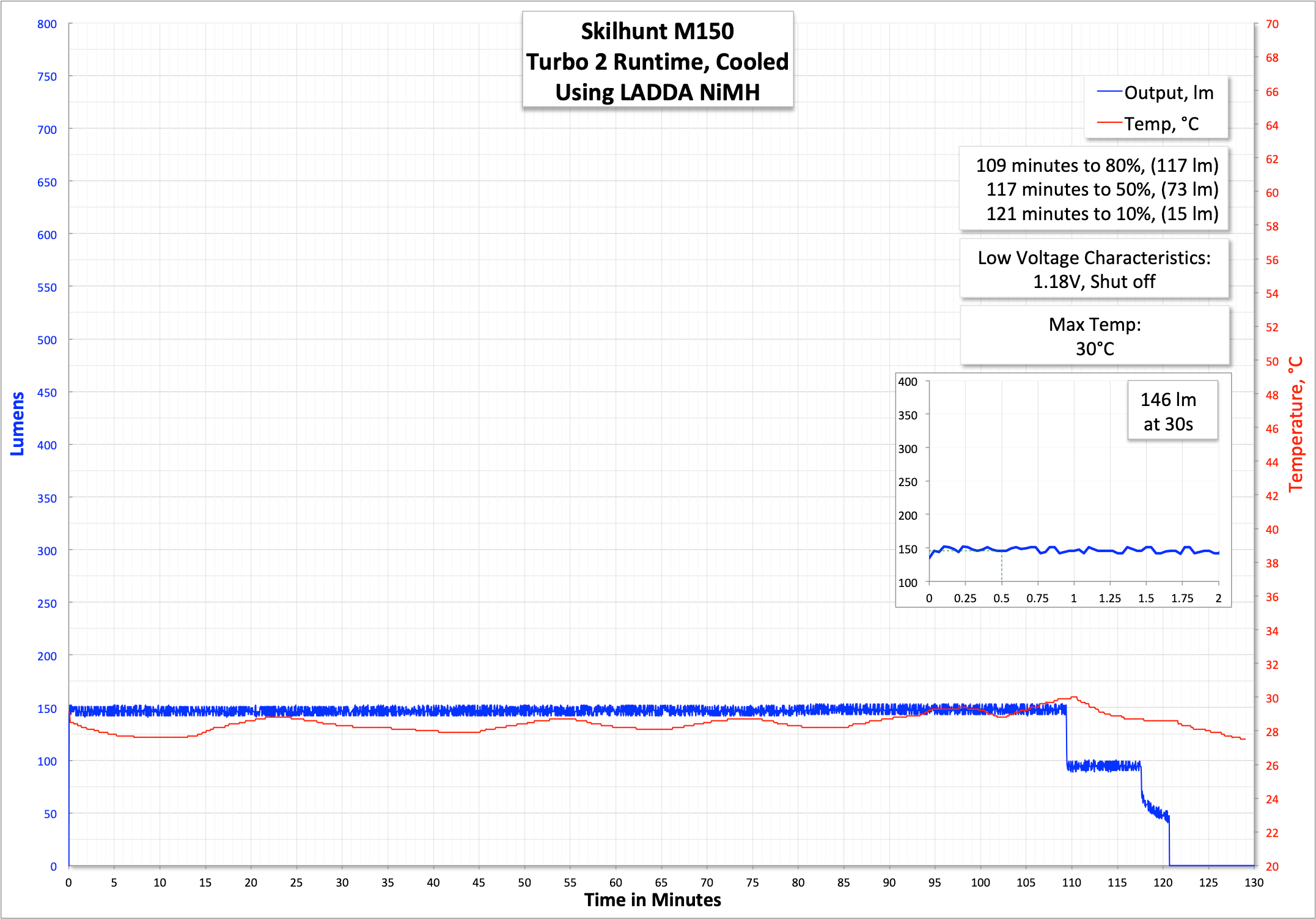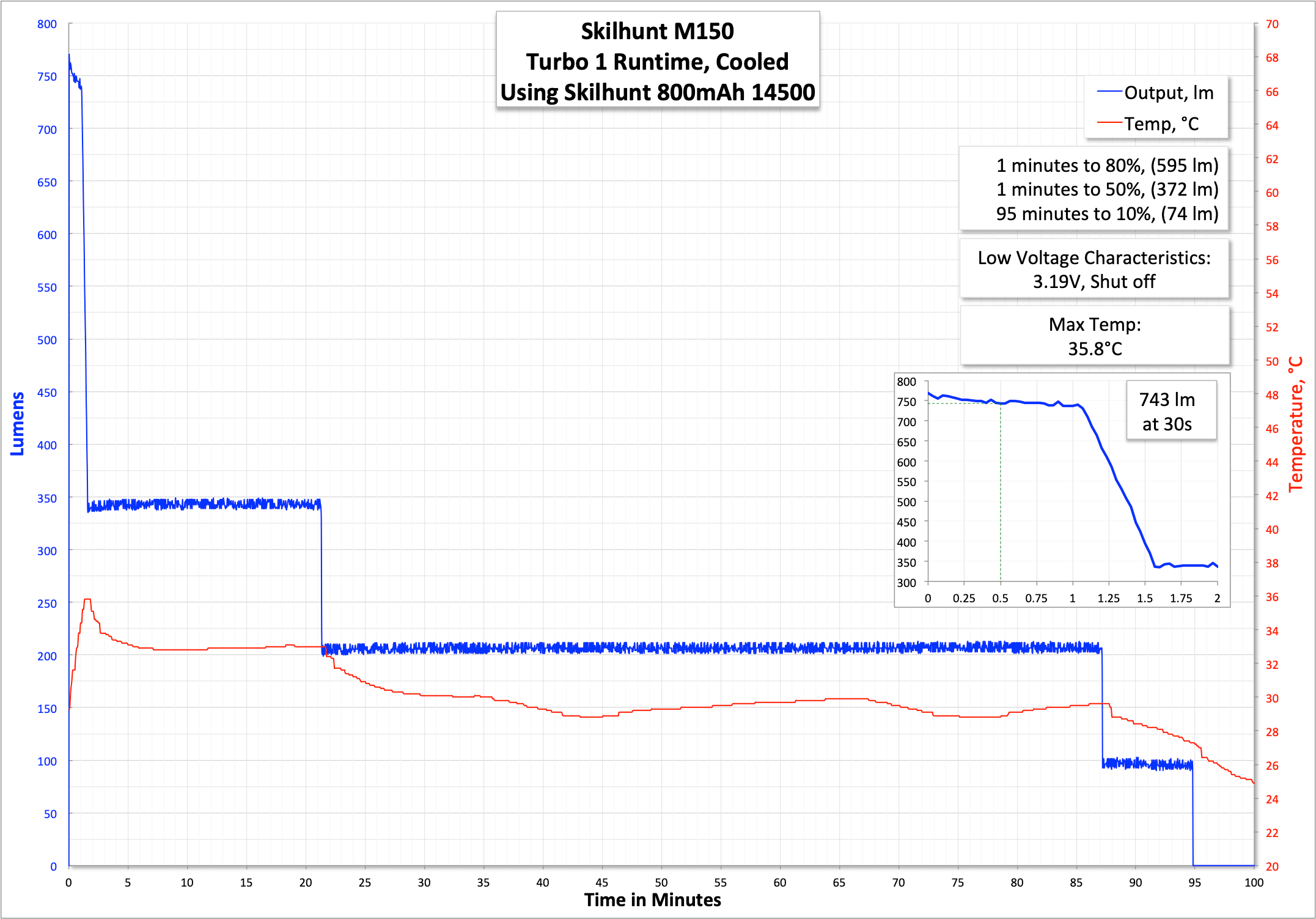 | Measured Lumens (at 30s) | 14500: 743 (99.1% of claim)^ AA (NiMH): 235 (97.9% of claim)^ |