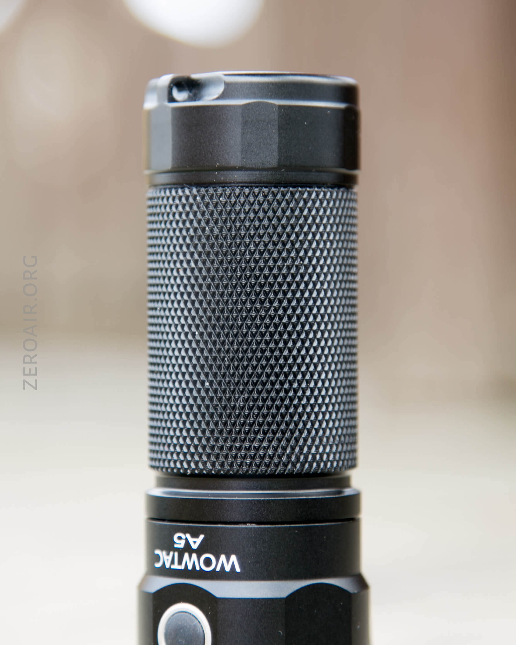 The knurling around the cell tube looks pretty aggressive, but it’s actually not – at least not so much to be abrasive on hands. It provides adequate grip.