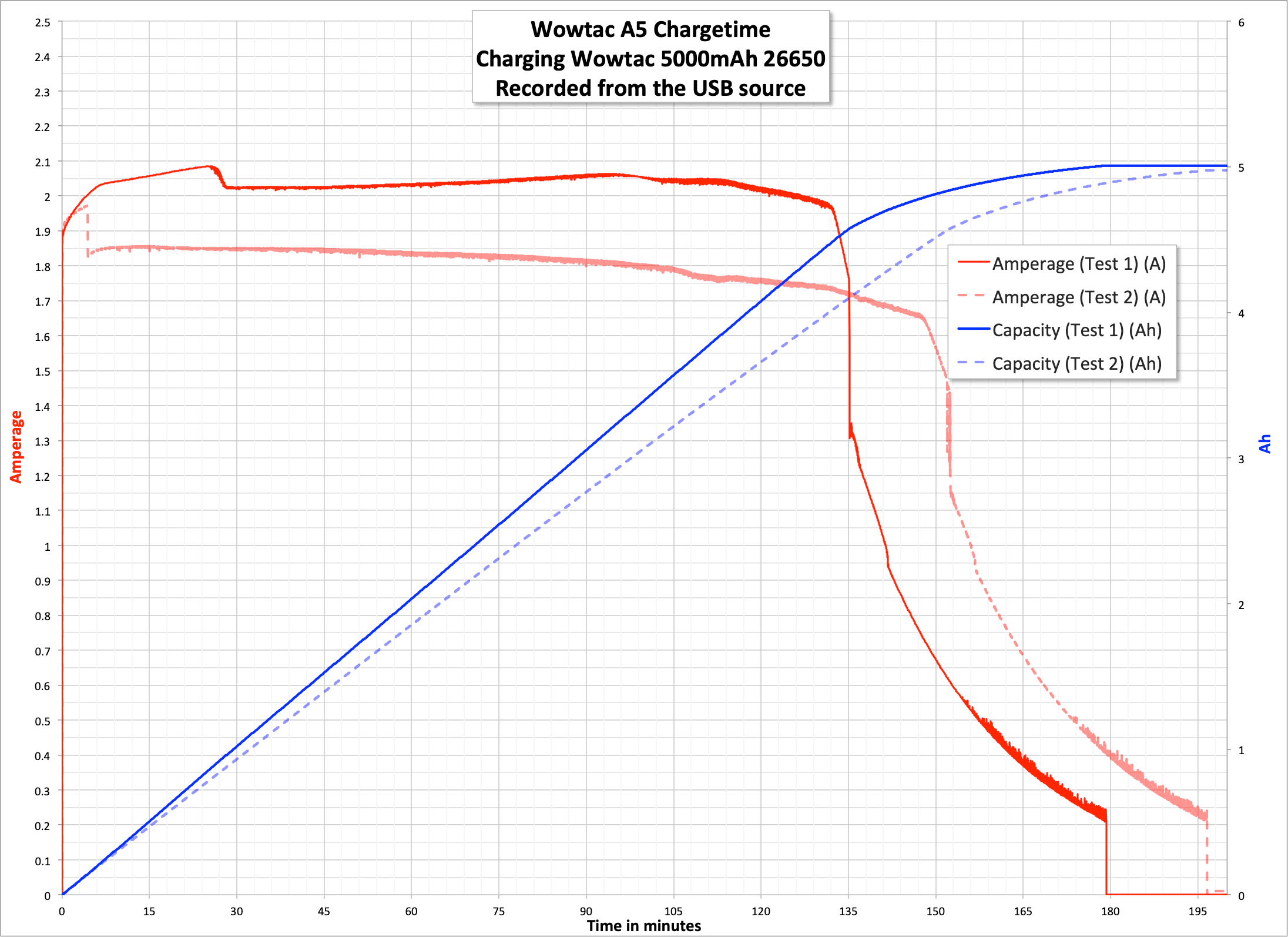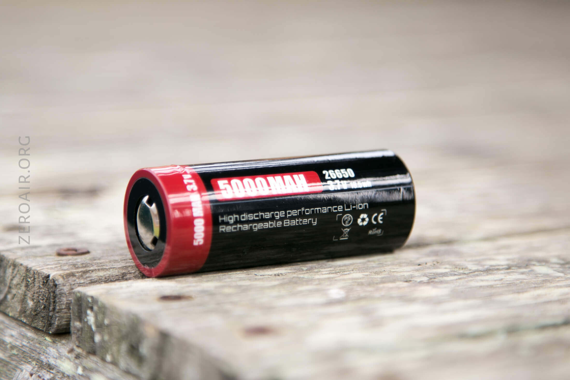 Wowtac includes the cell appropriate for the A5 – it’s a 26650 cell, at 5000mAh. The included cell is a flat-top and labeled as “high discharge.”