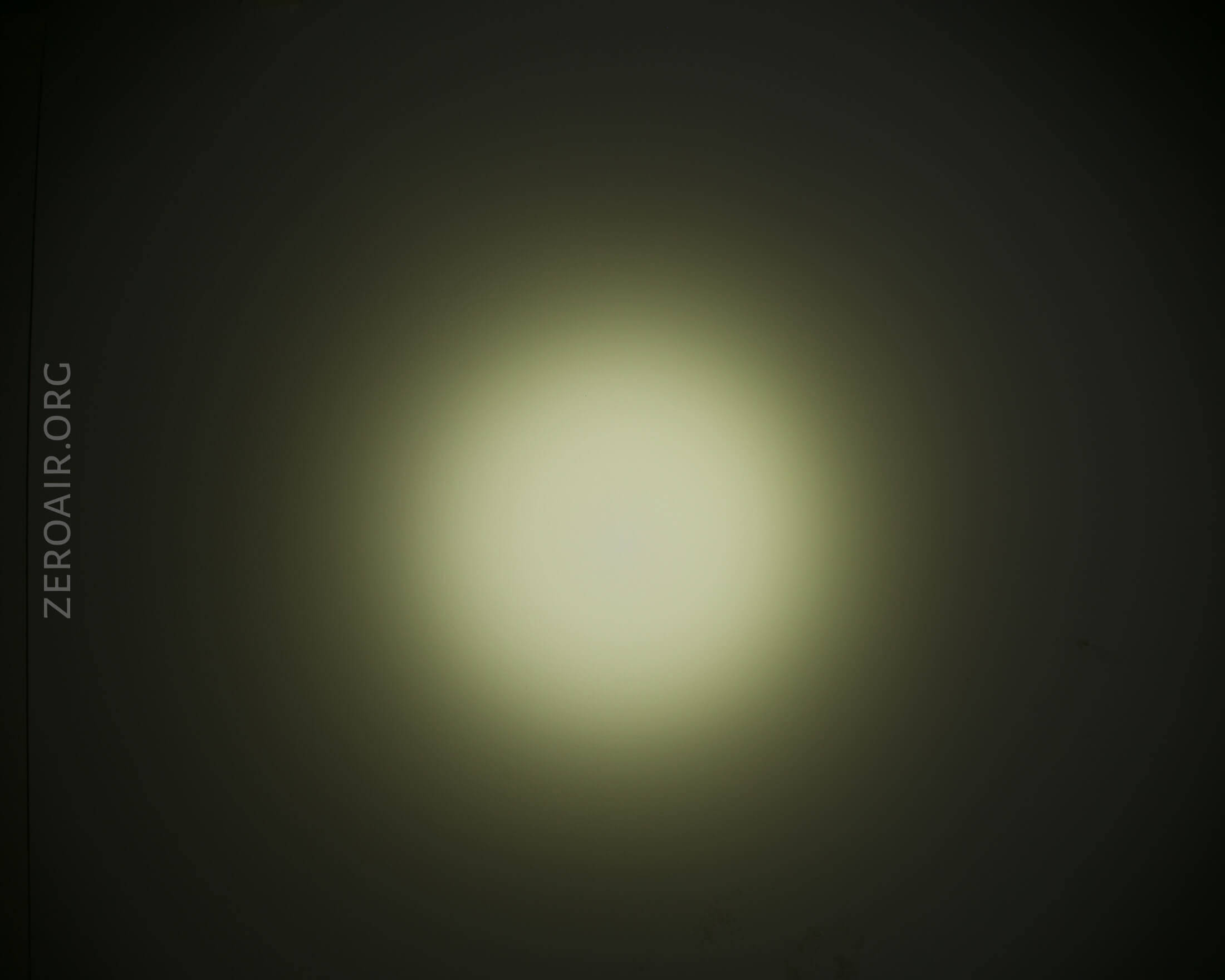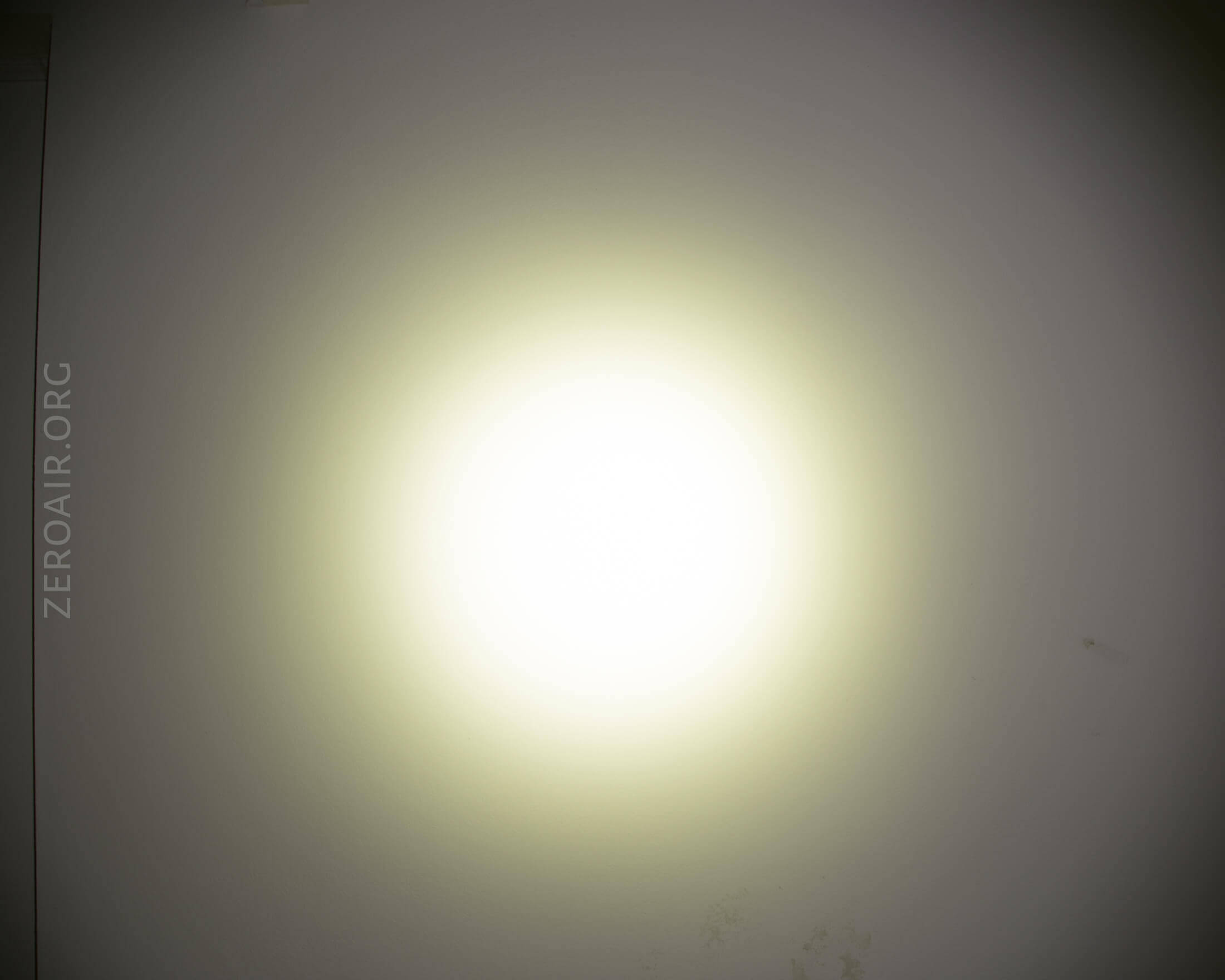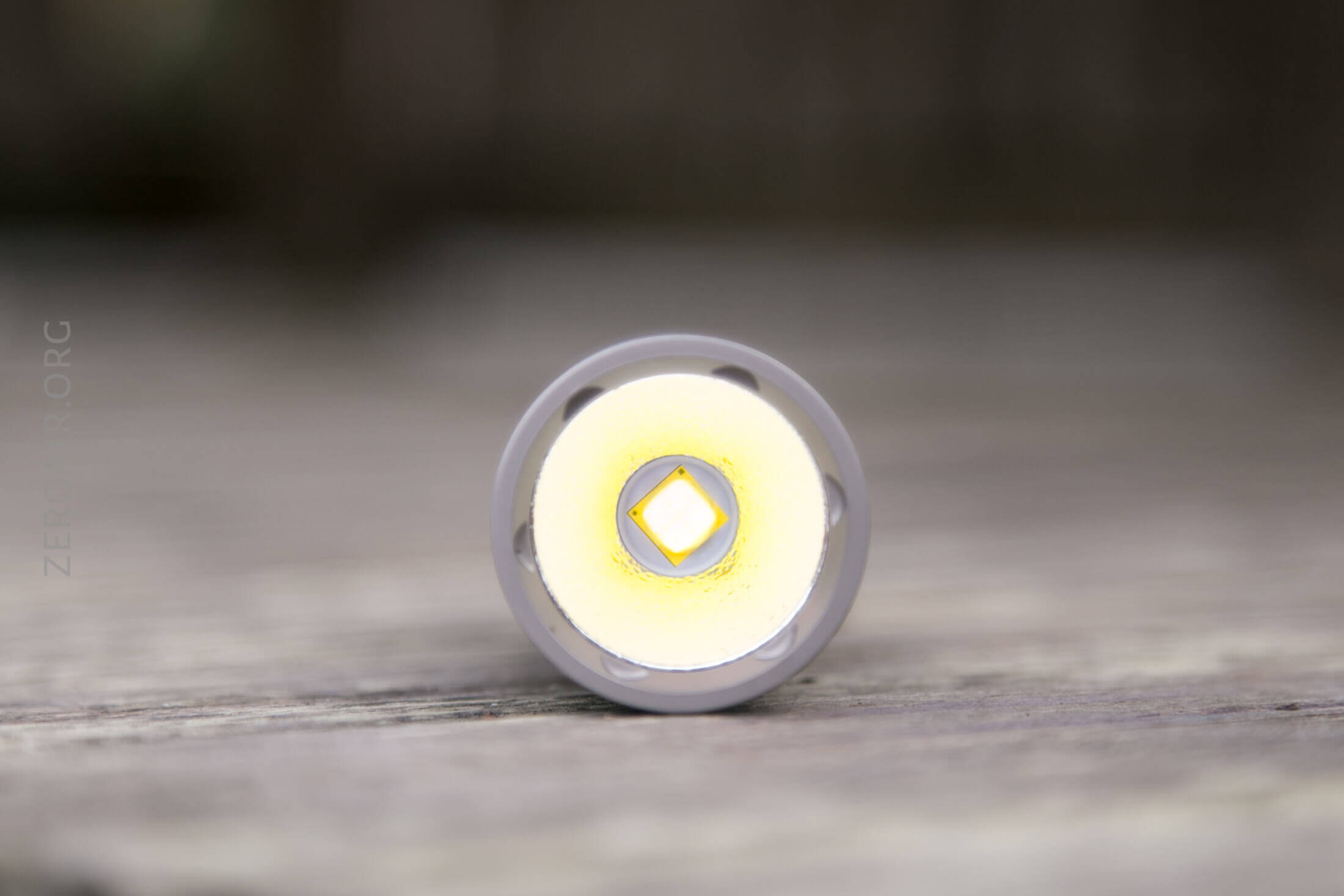 In the A5 is a Cree XHP70, and my sample is neutral white. The reflector is shallow and orange-peel. There’s mostly a hotspot, but with some spill still.