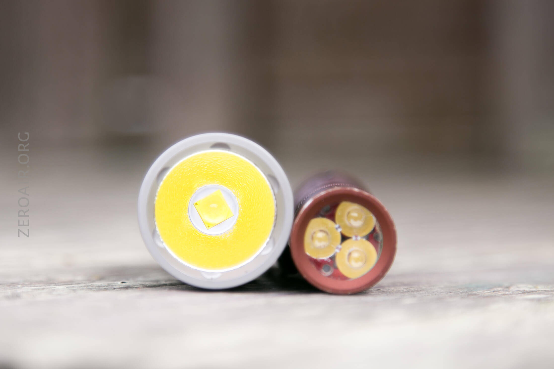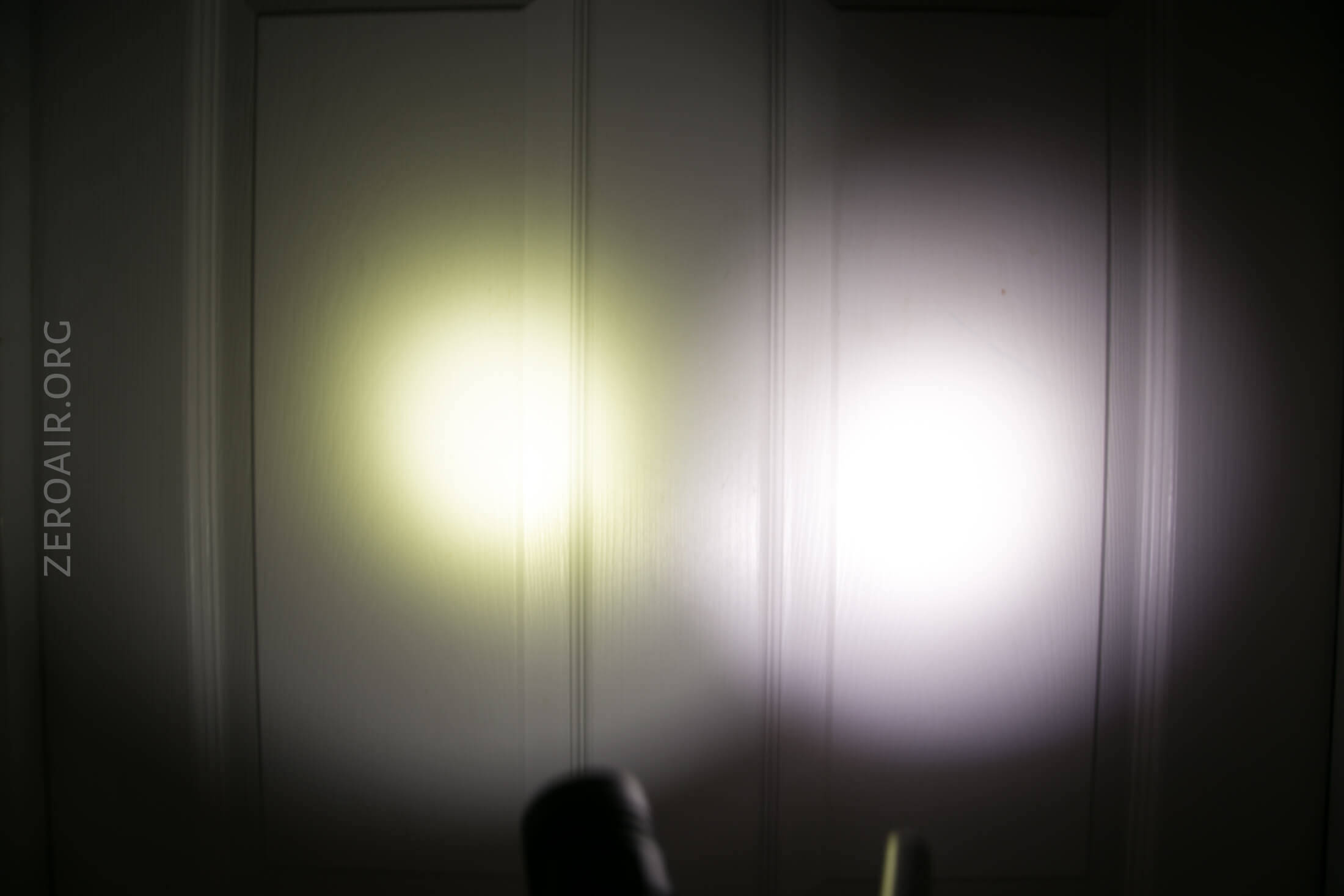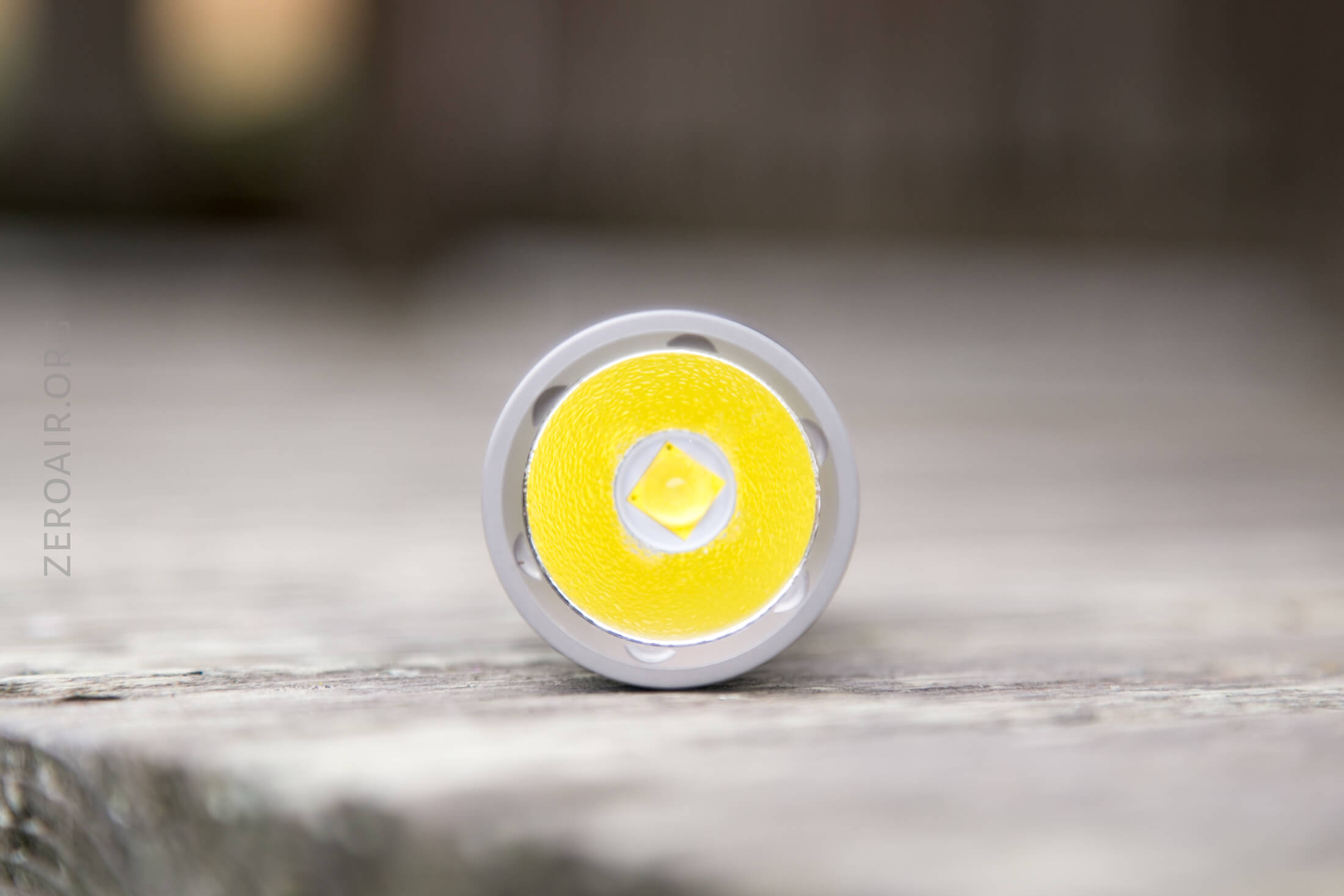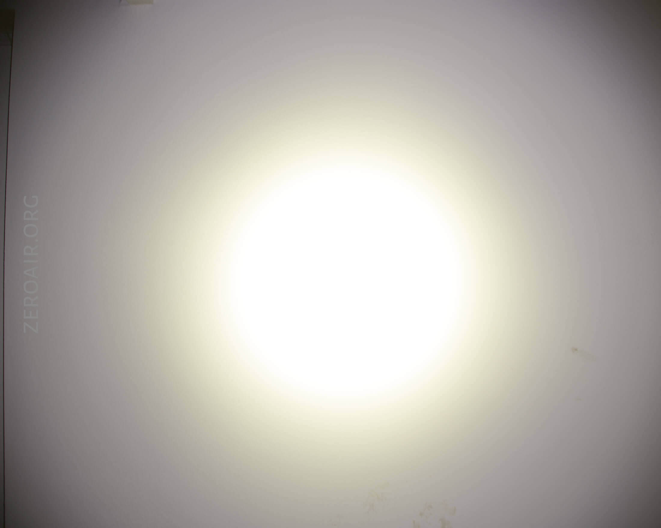 In the A5 is a Cree XHP70, and my sample is neutral white. The reflector is shallow and orange-peel. There’s mostly a hotspot, but with some spill still.