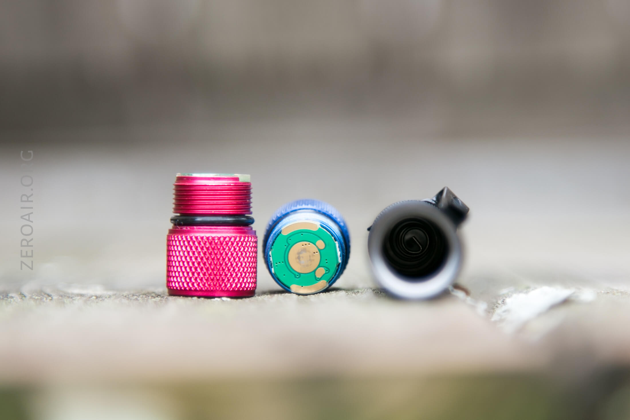 The tailcap has the same design as the original – there’s space for a 5mm magnet. (The other slot is for a tritium vial.) Though the hole can’t be seen from this angle, the hole for the split ring is between the magnet and tritium slots.