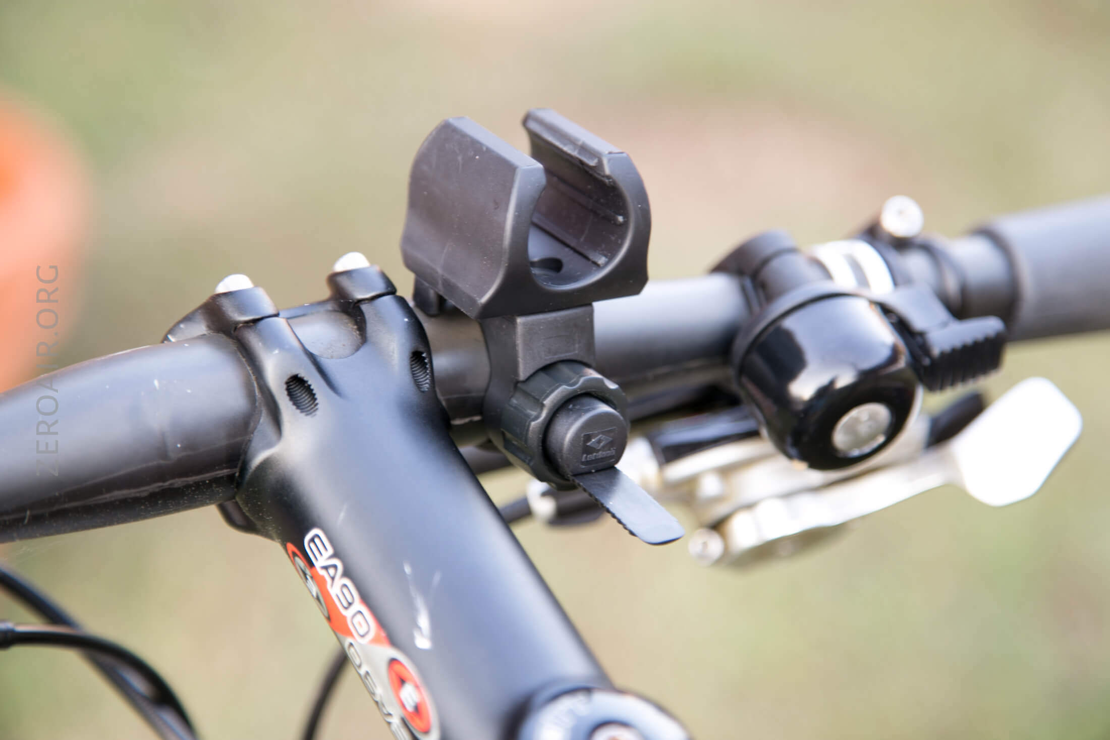 Here’s the mount on a bar. This is a versatile mount and will fit many different-sized handlebars.